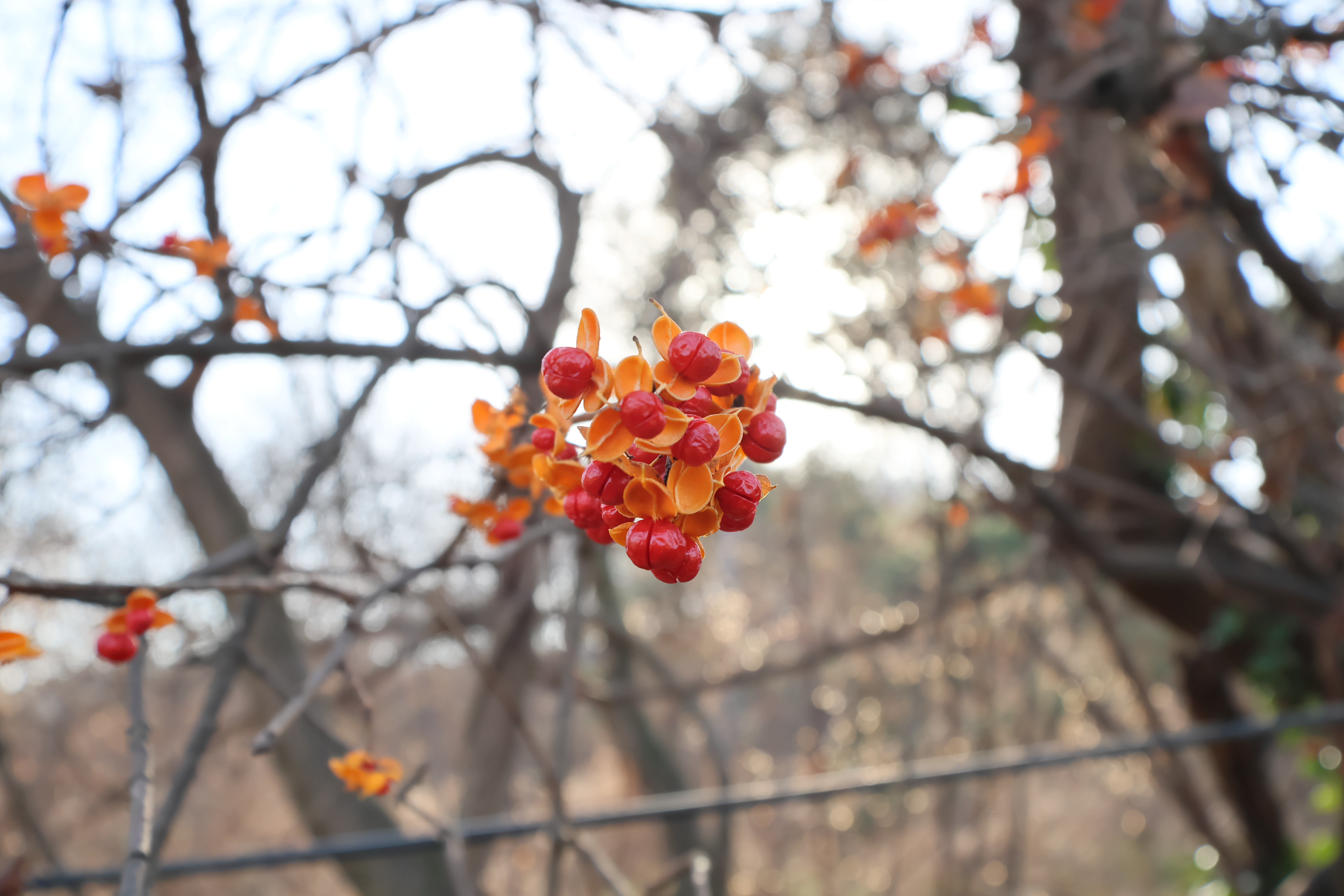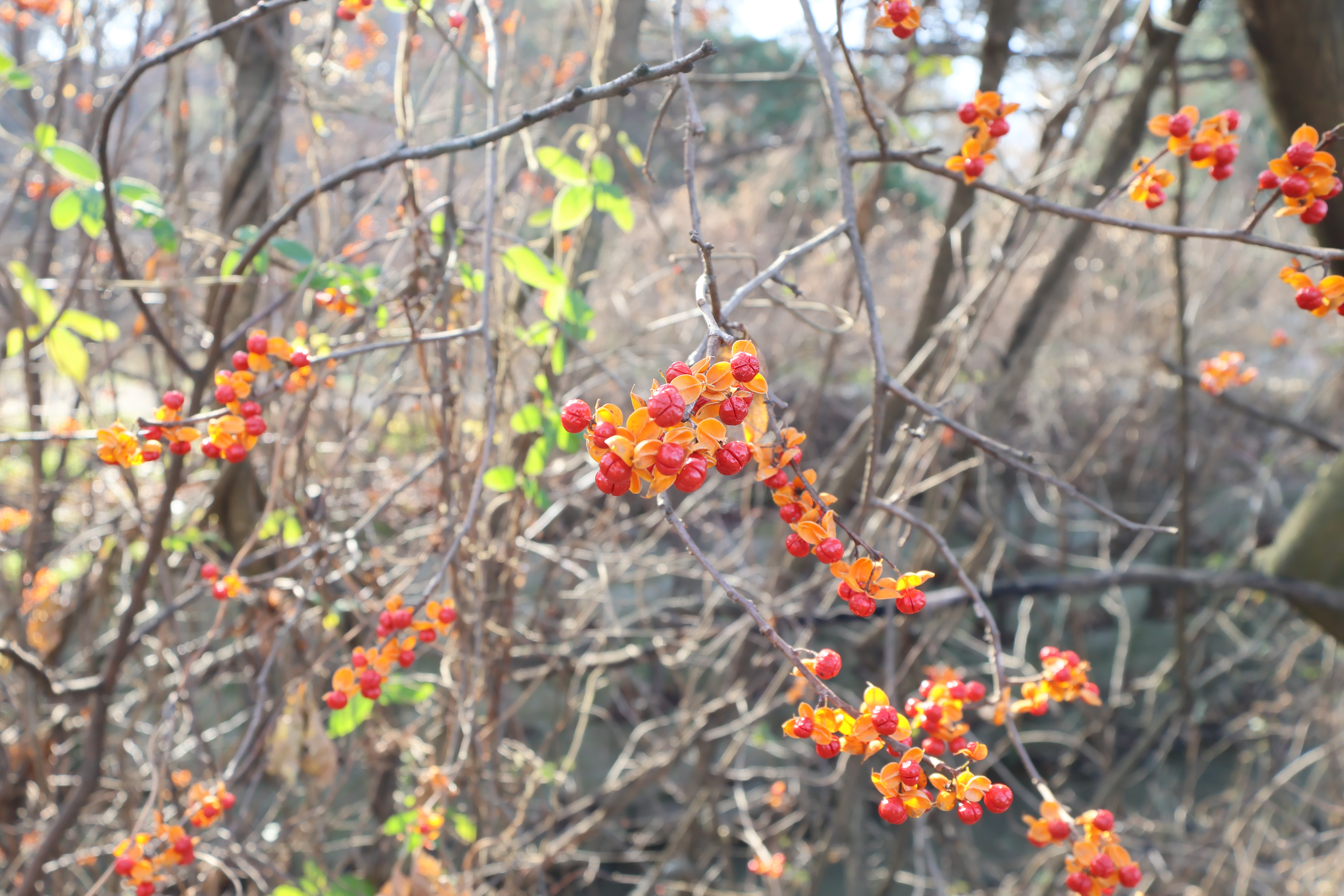 길옆에 노박덩쿨이 있고 노박열매가 앙증맞게 달려 있었다