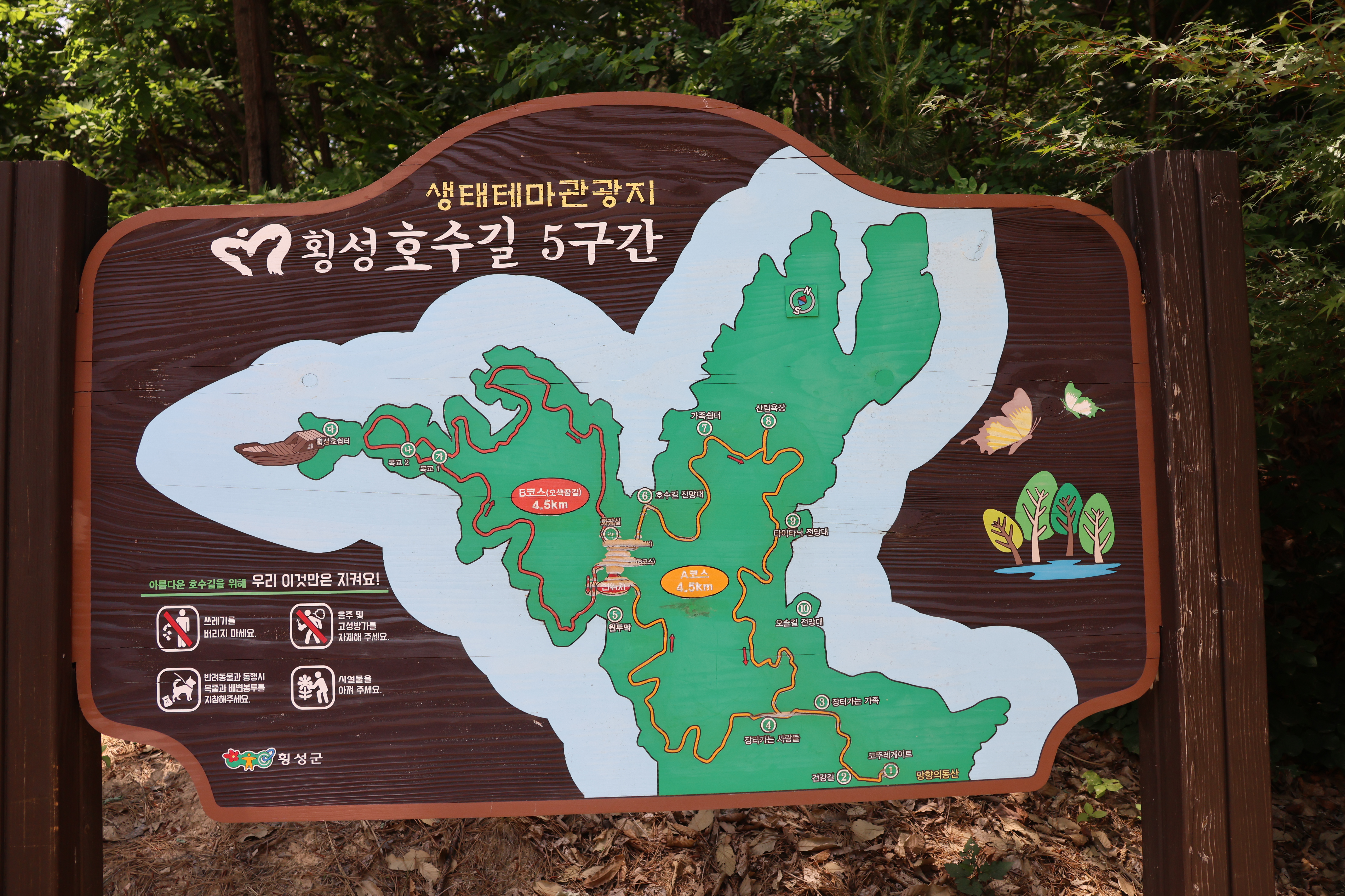A코스는 기냥 호수주변을 걷는거고 B코스는 호수 주변을 걷는건 같지만 중간중간 아기자기한 전망대와 휴식처가 있다