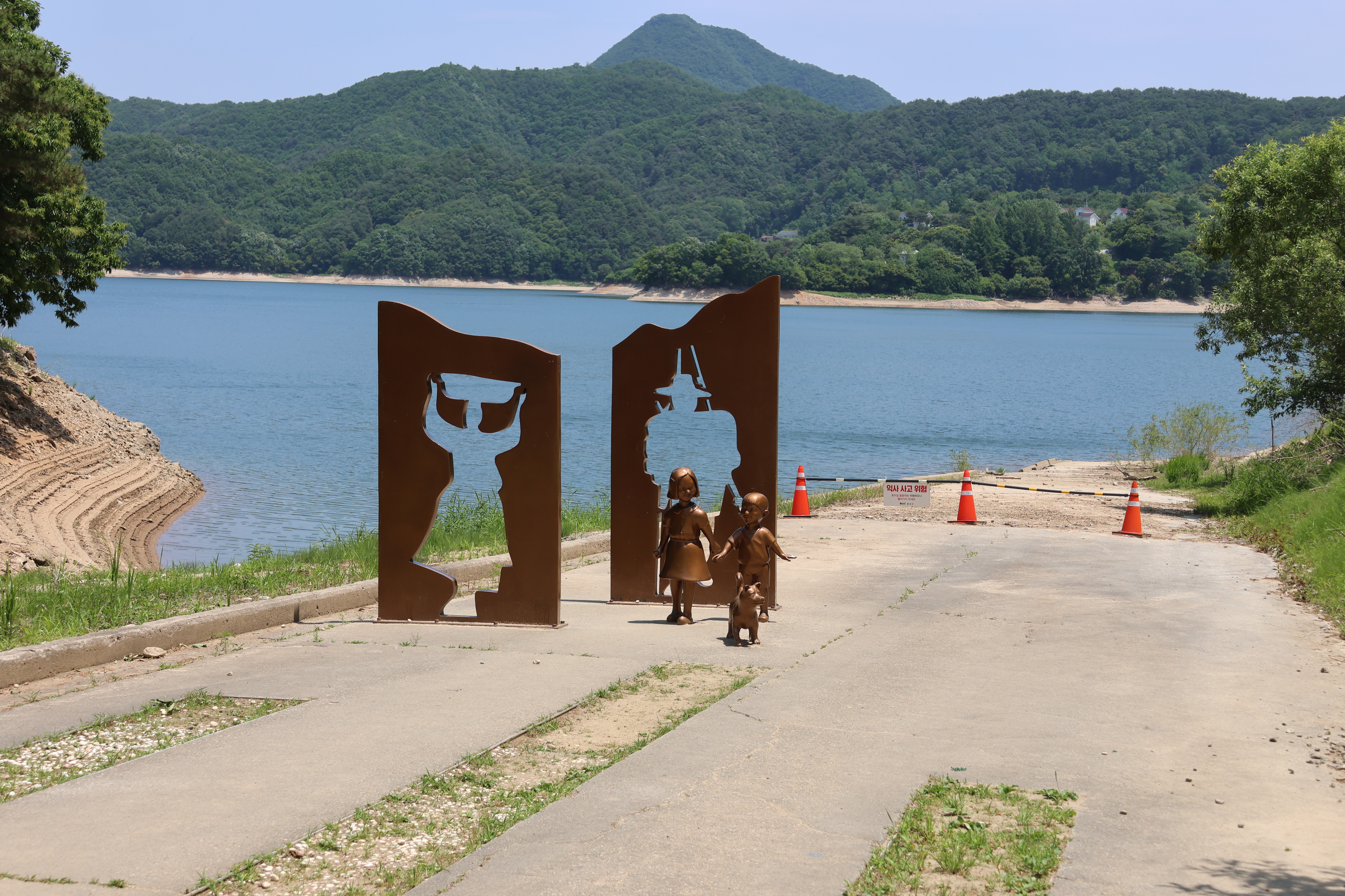 문제는 급경사 임에도 보호난간이 없어 미끄러지거나 실족하면 익사위험이 다분하다