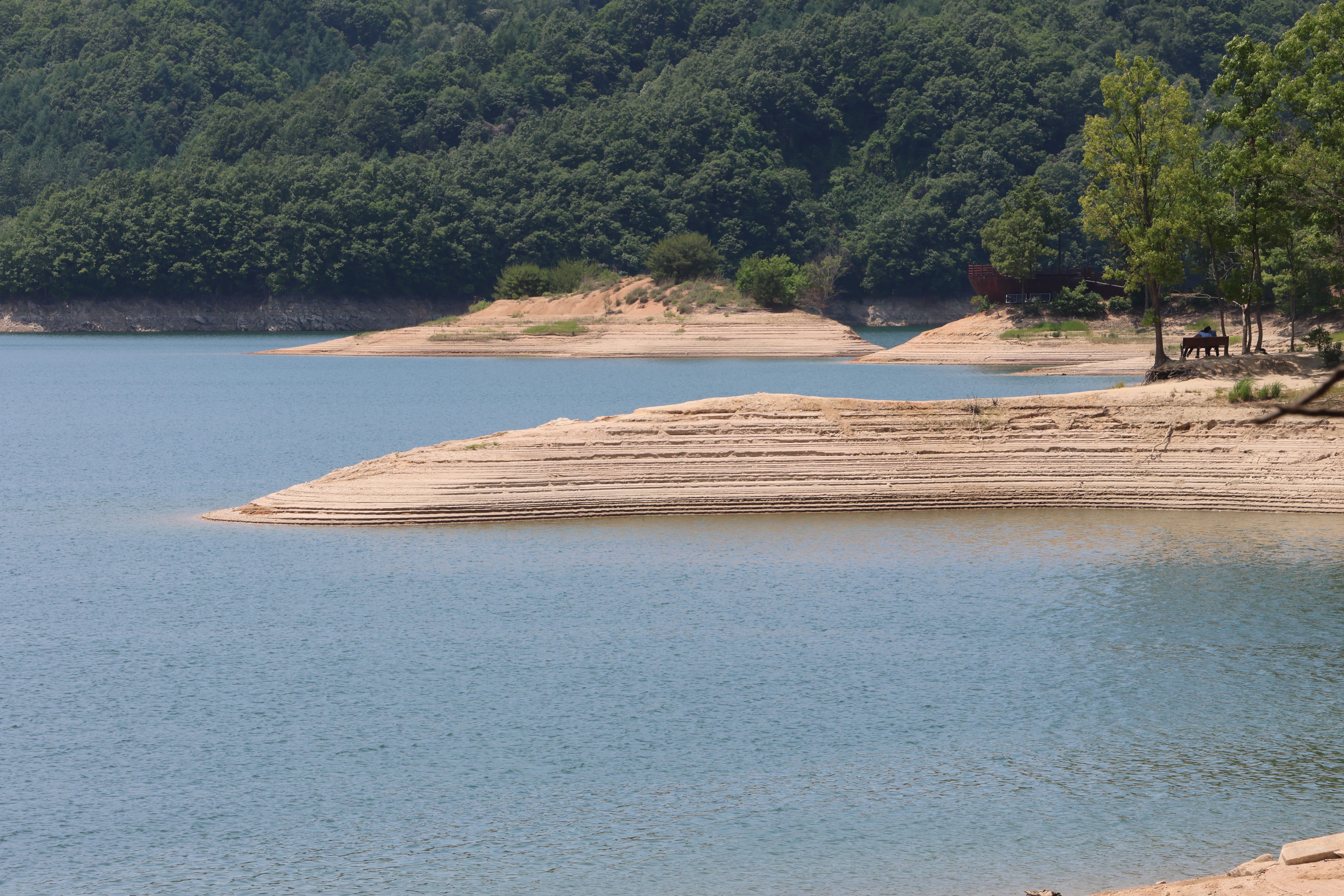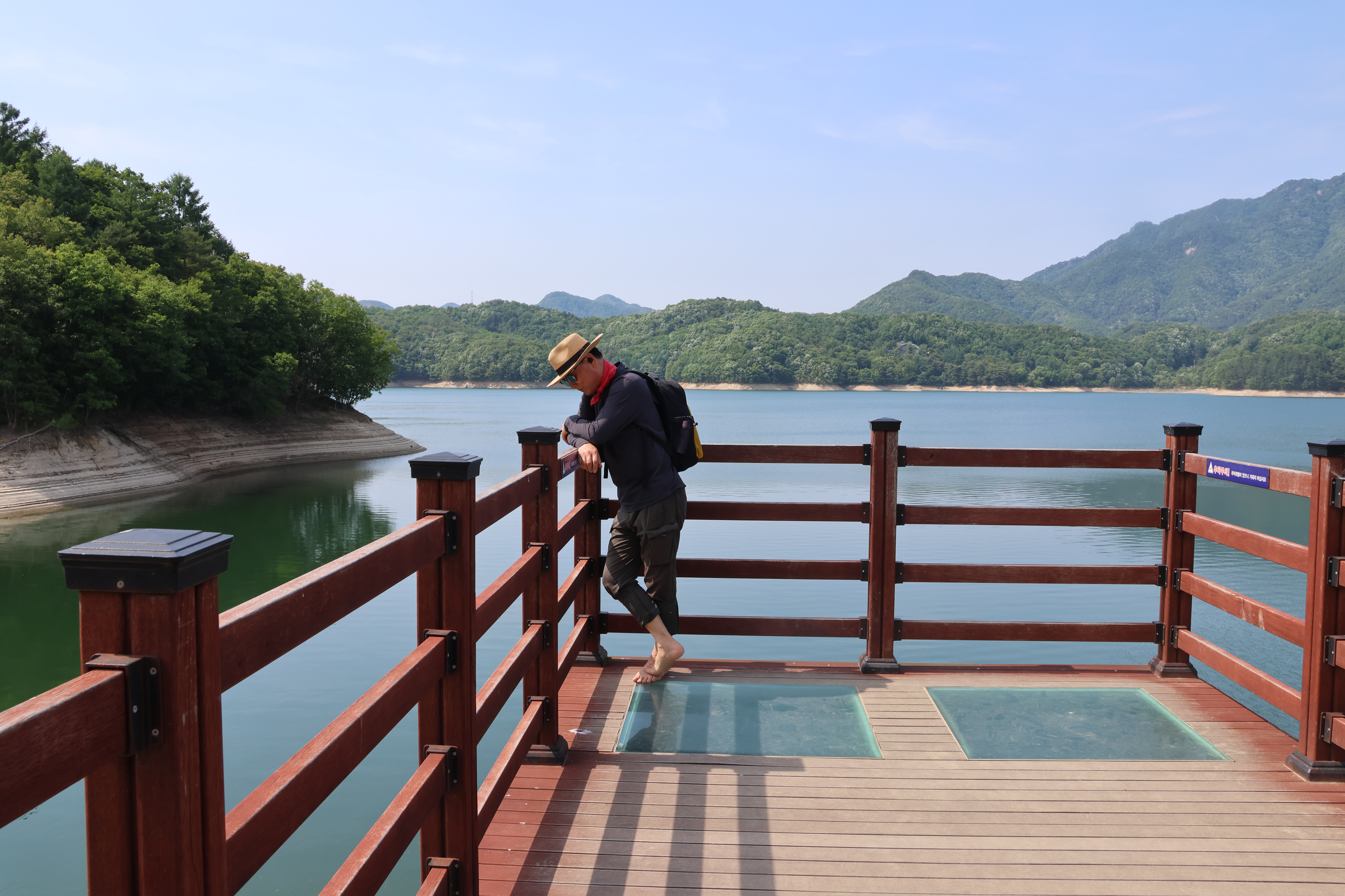 작년 가을에 왔을때는 만수위라 산책로 주위로 물이 잘랑잘랑해서 걸을만혔는뒤 방류를 하여아쉽다