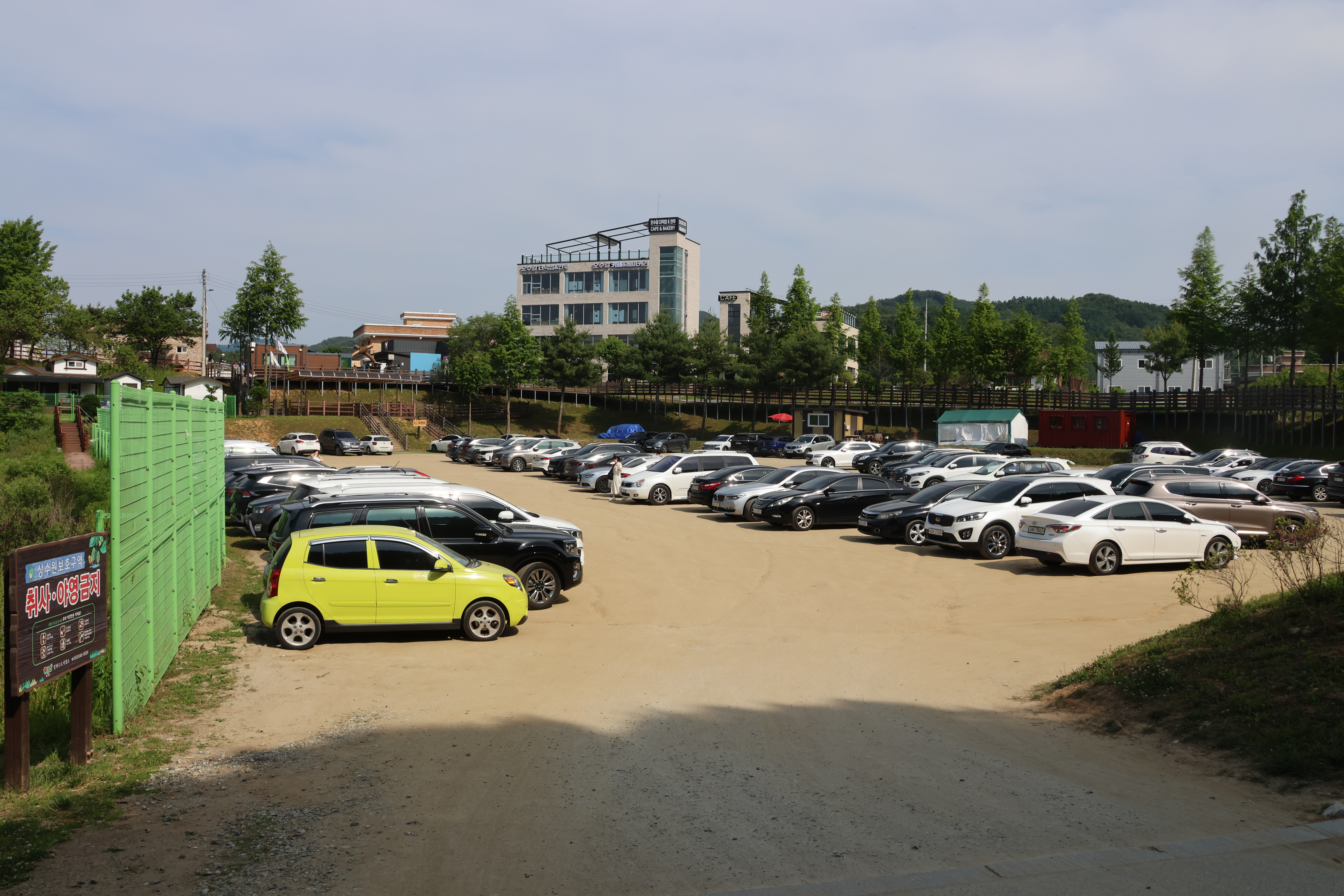 차라리 데크길을 따라 계속 들어오면 매표소 좌측에 저런 임시 주차장이 있다