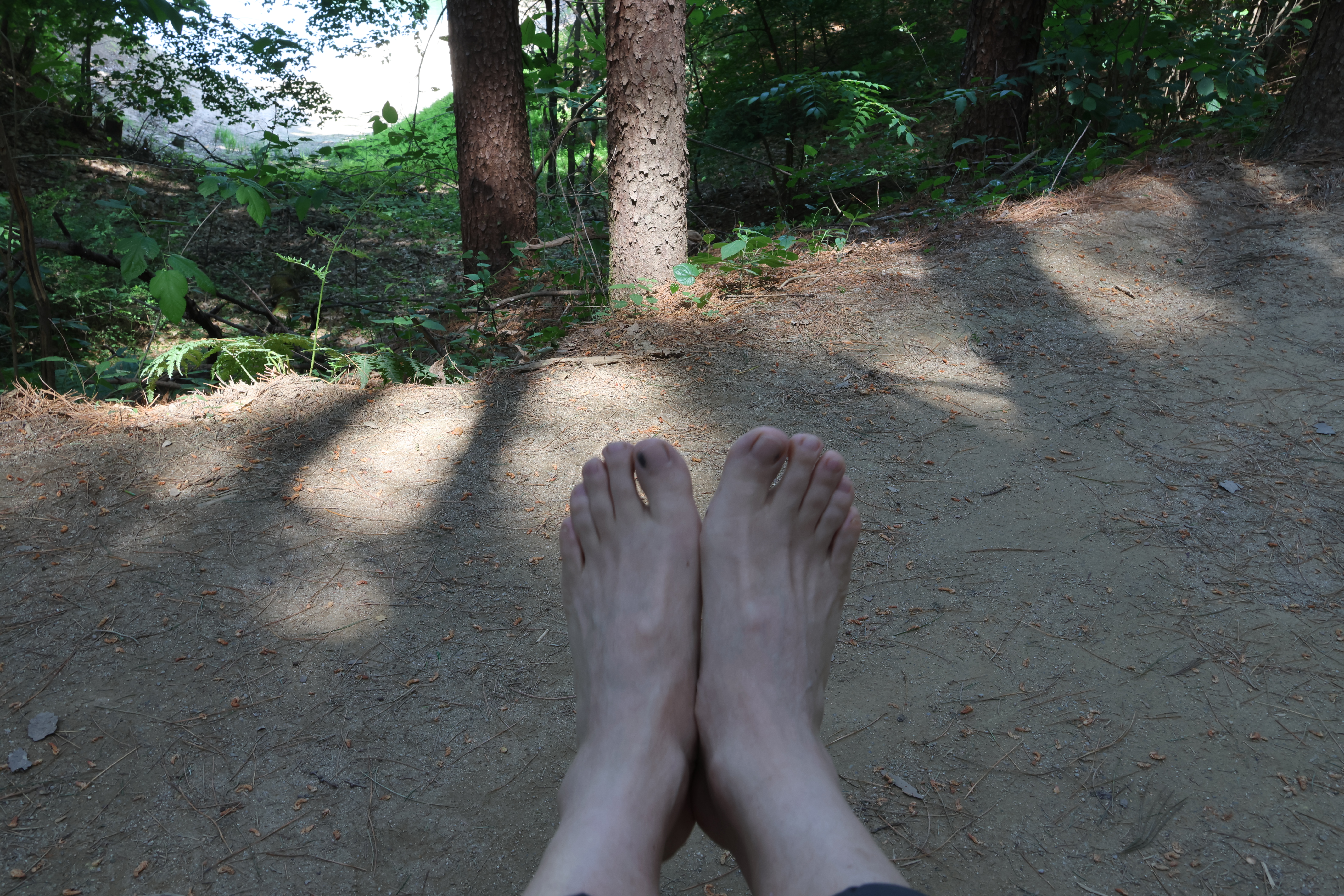 길이 넘 좋아 여기서 부터는 맨발로 걸었다