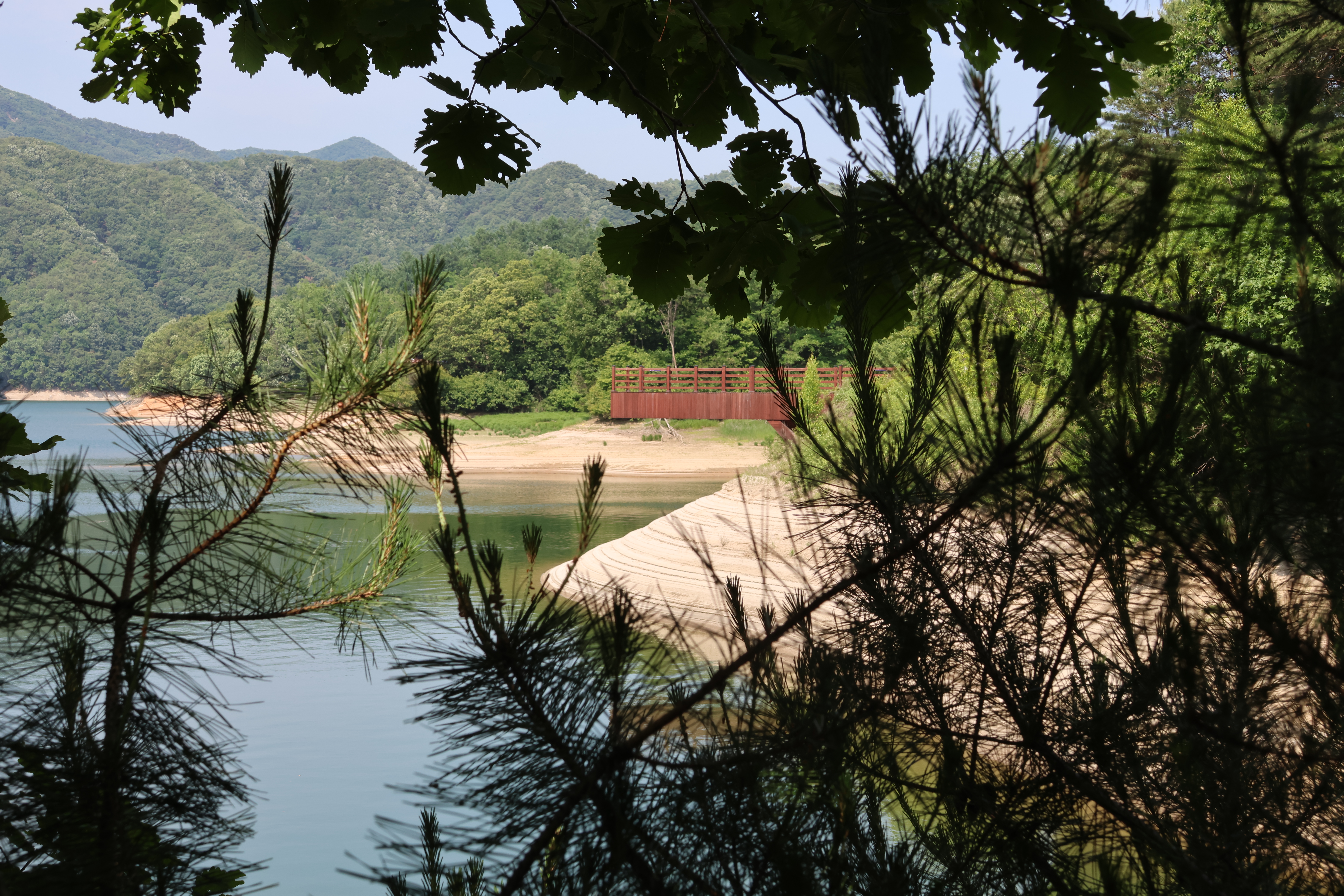 횡성댐을 만들고 댐주위에 산책로를 만들었다