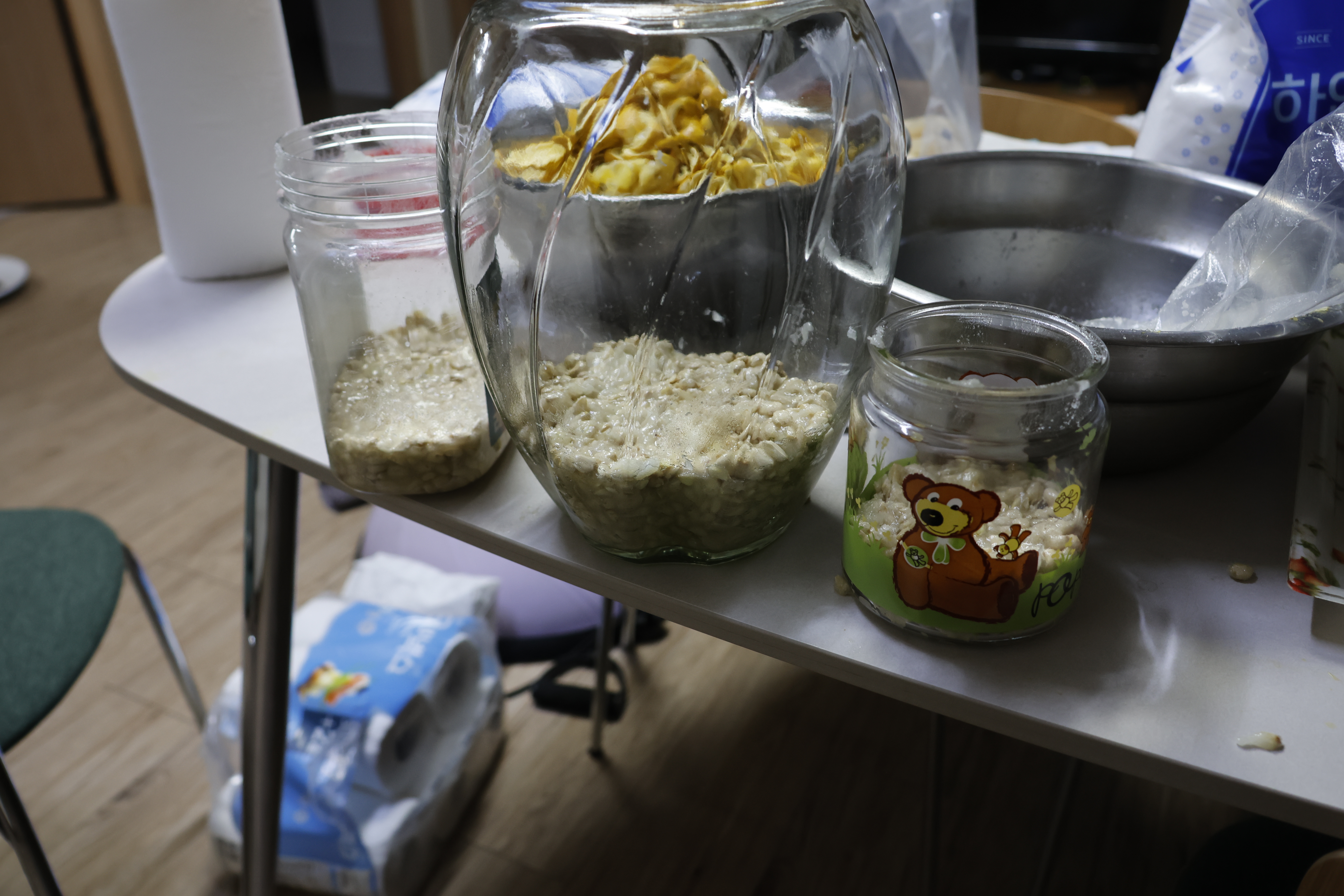 설탕범벅 씨앗을 담금병 아래쪽에 깔아준다.