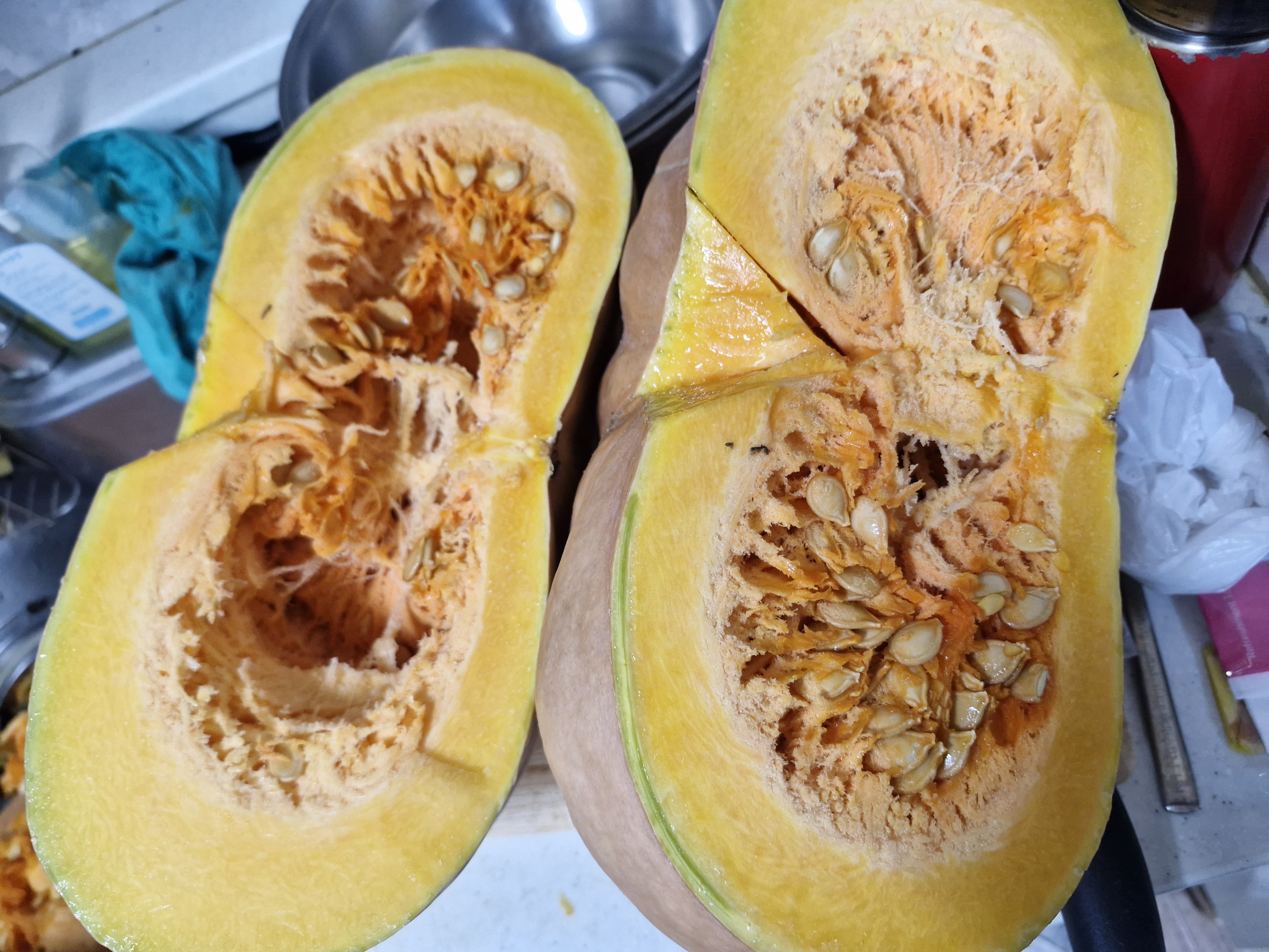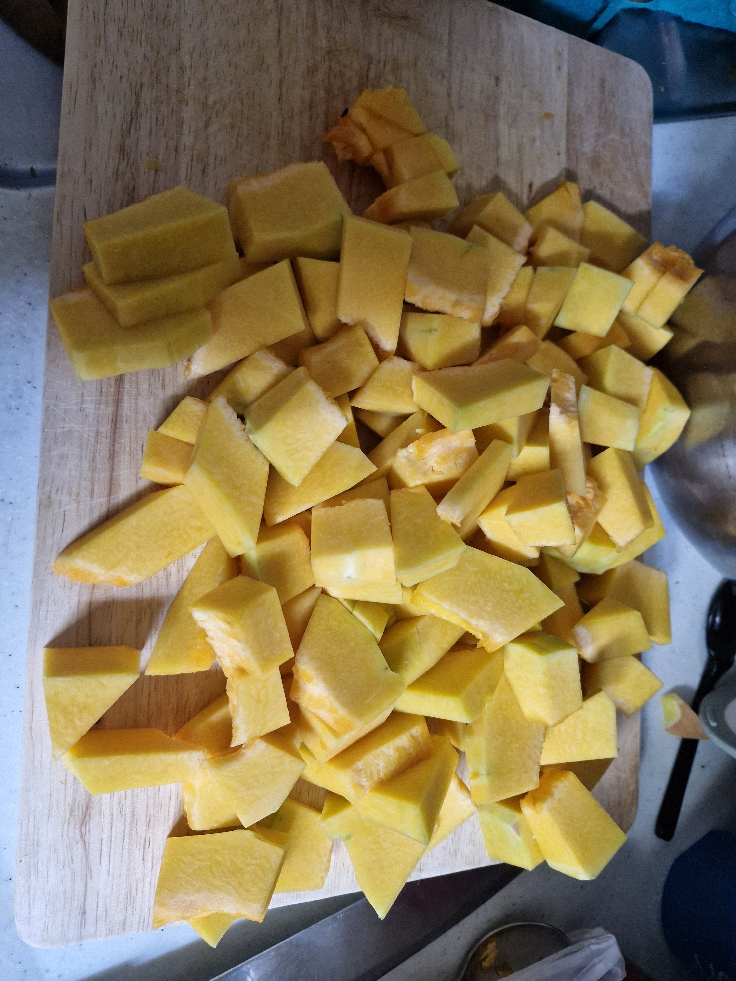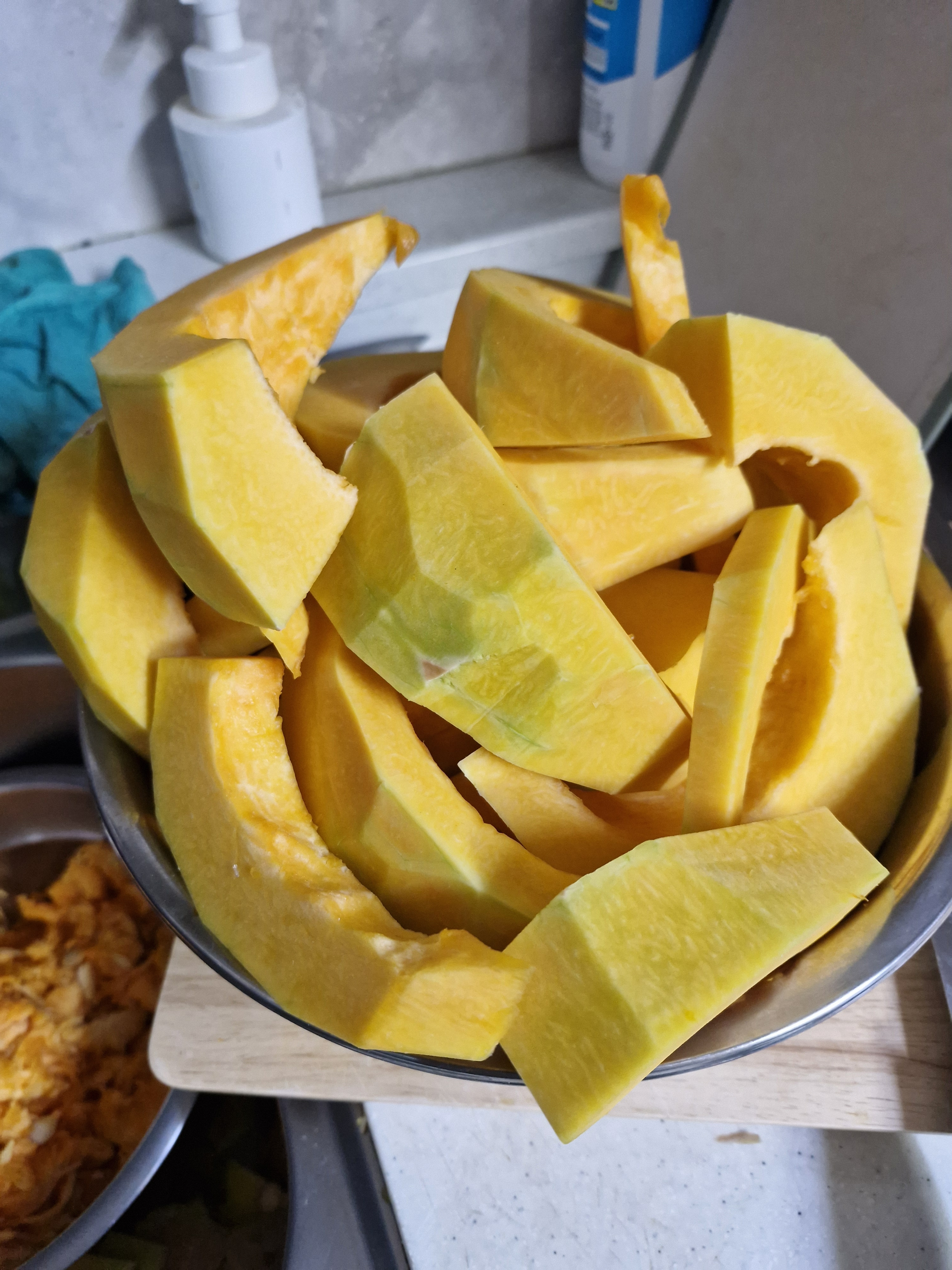 호박은 겉껍질이 단단하여 칼쓸때 조심해야 한다, 팁은 꼭찌???(표현이 좀 거시기허냉)때어낸 안쪽에 칼을 넣고