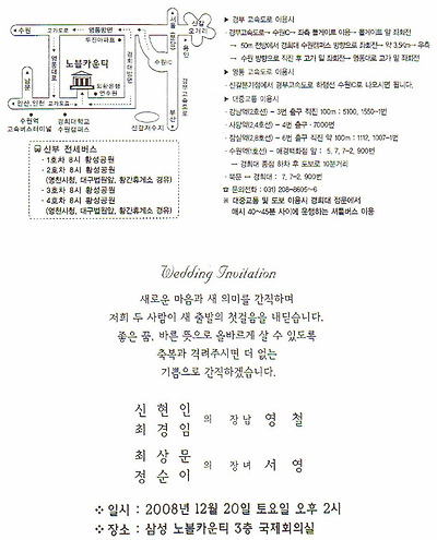 [스크랩] 최상문 장녀(최서영) 결혼식에 초대합니다. 작성자1문 최상문|작성시간08.12.02|조회수35 목록 댓글 0 글자크기 작게가 글자크기 크게가 결혼식(12월20일)초대장.jpg 결혼식하객승차차량이용표.hwp 첨부파일첨부된 파일이 4개 있습니다. etc 파일 IMG_1184.JPG 다운로드 jpg 파일 결혼식(12월20일)초대장.jpg 다운로드 hwp 파일 결혼식하객승차차량이용표.hwp 다운로드 jpg 파일 결혼식(12월20일)초대장.jpg 다운로드 다음검색 스크랩 원문 : 천북초등36회동기회 현재 게시글 추가 기능 열기 북마크 공유하기 신고 센터로 신고 댓글 댓글 0 댓글쓰기 답글쓰기 댓글 리스트