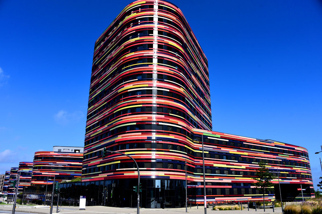 TV송신탑 우측으로 3번 굴곡진 파란색 건물이 엘베 필하모닉홀(Elbe Philharmonic Hall) -2007년 지어진 콘서트홀