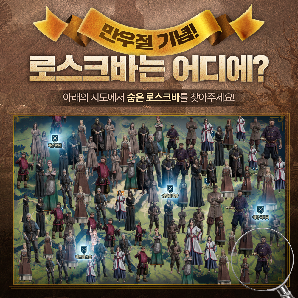 - 이벤트 기간 동안 아래의 이벤트 문제를 확인 후 로스크바가 숨은 곳과 가장 가까운 지역에 투표해 주세요.