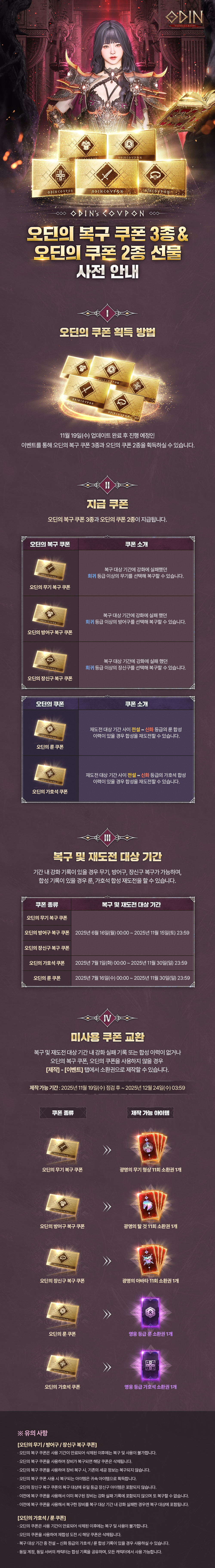 【 오딘의 복구 쿠폰 3종 & 오딘의 쿠폰 2종 선물 사전 안내 】