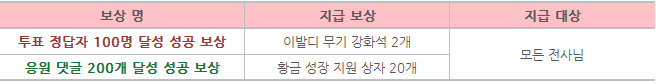 전사님들의 투표 결과에 따라 보상이 다르게 지급되는데요!