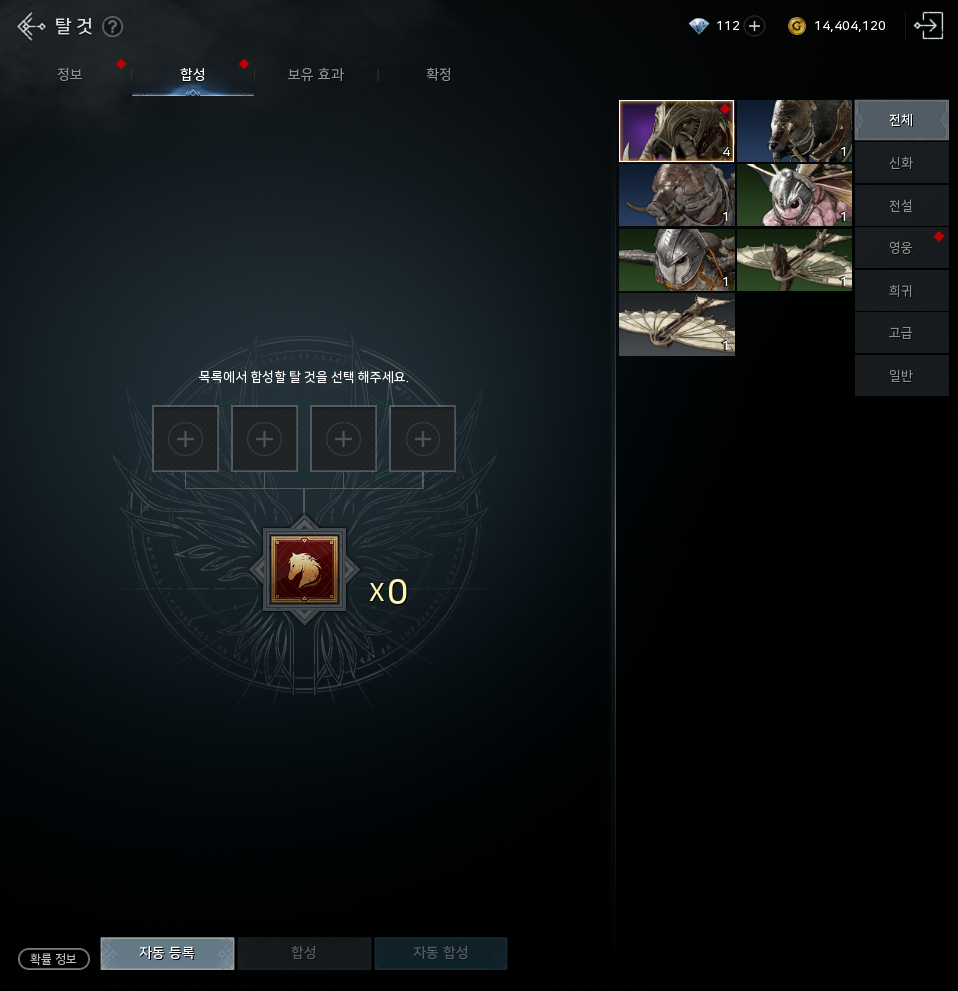 안녕하세요. 70리세 탈것4마리 합성 1트 성공 했습니다!