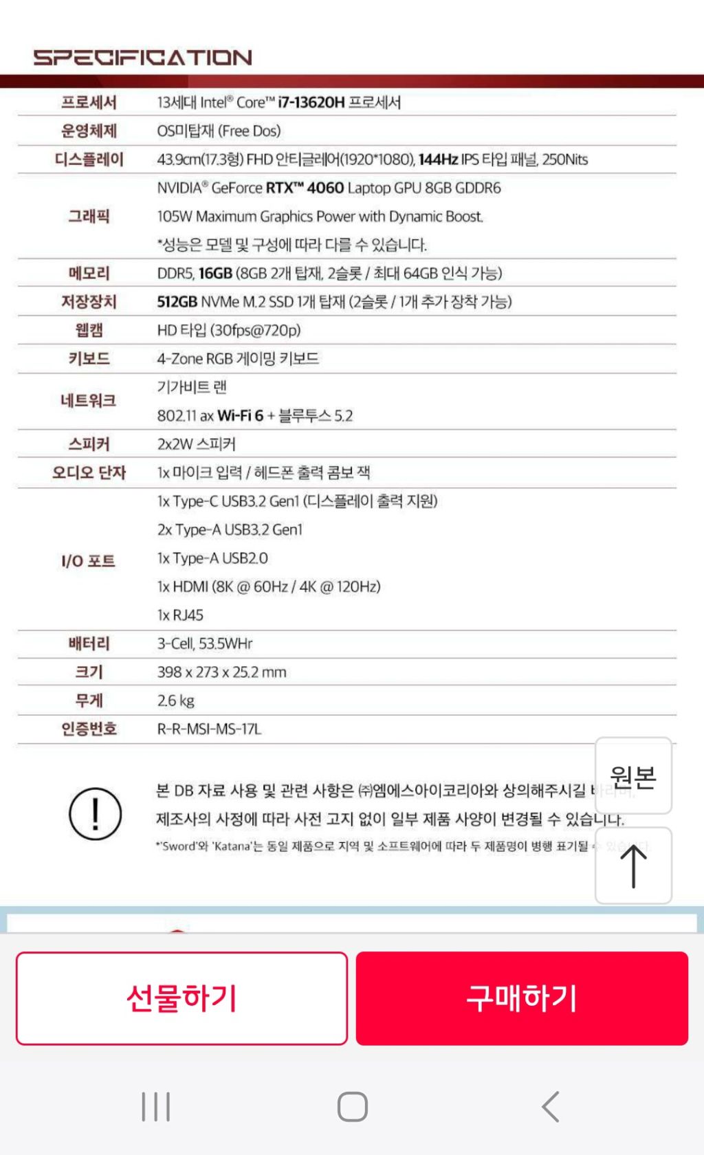 노트북에서 4060 120tgp면 거의 데탑수준 게임성능은 위에꺼가 윈