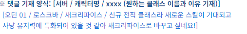 위에 클래스변경 이벤트 공지 내용인데 예시에 '사냥 유지력에 특화되어 있을 것 같아~' 라고 써놓음 ㅋㅋ