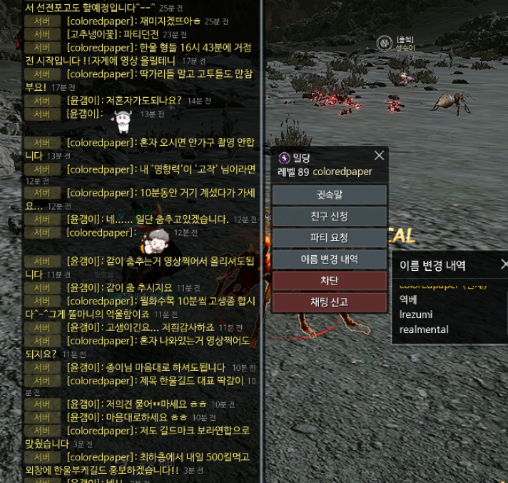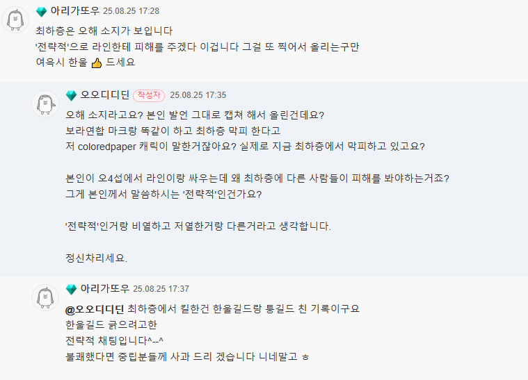 한울 길드 긁으려고 한 채팅이라고 하지만