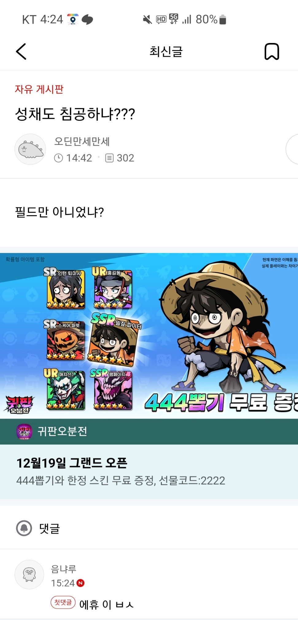 속보 음냐루님 다른댓글 작성 필독 작성자담배피는호랑이|작성시간25.12.31|조회수736 목록 댓글 2 글자크기 작게가 글자크기 크게가 다음검색 현재 게시글 추가 기능 열기 북마크 공유하기 신고 센터로 신고 댓글 댓글 2 댓글쓰기 답글쓰기 댓글 리스트 작성자R∀MEN | 작성시간 25.12.31 다른 말도 할 줄 알았다는 걸 오늘 알았다. ㅋㅋㅋ 작성자핵두산 | 작성시간 25.12.31 4년 최초로 다른 말을 이끌어냄ㄷㄷ 댓글 전체보기