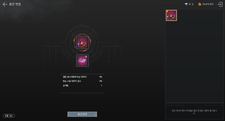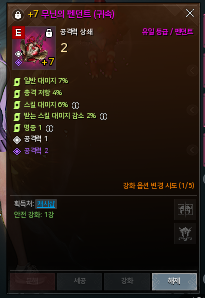 씨앗 덕분에 옵션 변경도 하고 좋네요. 그런데 결과를 봤을땐 7강 악세에서 변해봐야 얼마나 변할까 싶긴 하지만 투력은 얼추 100정도 오르긴 했던데