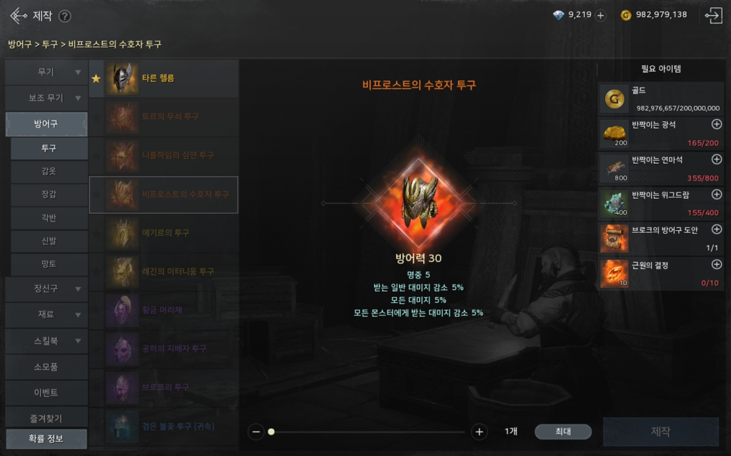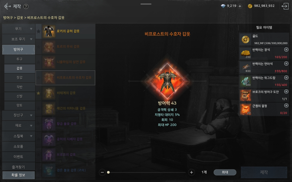 신화 방어구 제작 선택