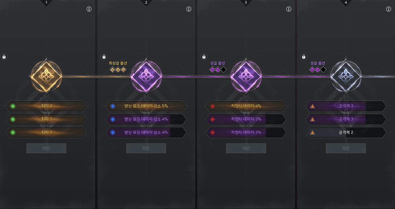 작성자라휘 작성시간 26.04.08 애매하네요. 쟁용으로 쓸꺼면 1번 치확 2번 치저 붙여야되고. 사냥용이라기엔 3번 명중이 없고. 저라면 다시. 받모는 어차피 나중에 넘쳐남