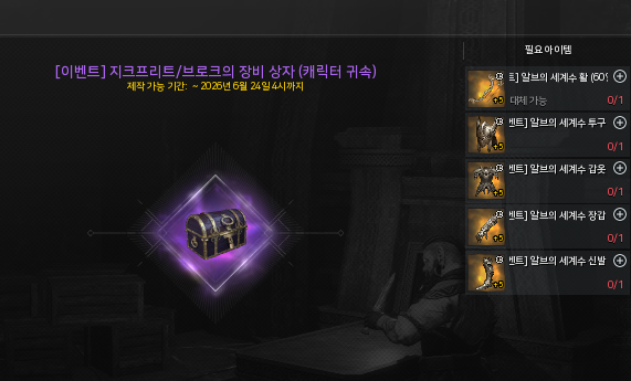 안녕하세요 처음 시작할 때 이벤트로 전설 등급 무기 헬멧 투구 갑옷 장갑 신발을 받았는데 만료 전에 제작 이벤트 재료로 사용 가능하다고 해서 그곳에 들어갔더니 아무것도 제작할 수가 없는데 어떻게 해야 합니까?