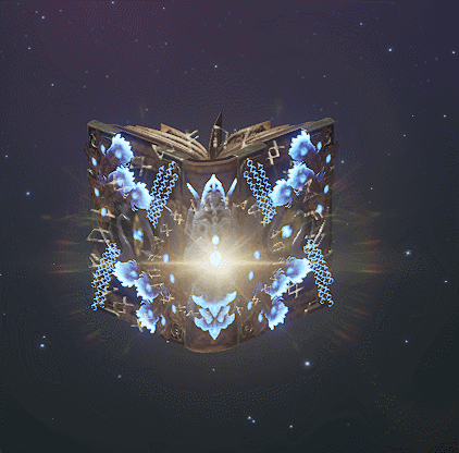 새크리파이스의 무기 형상은 신비롭고 화려한 책 형태의 모습을 하고 있어요.