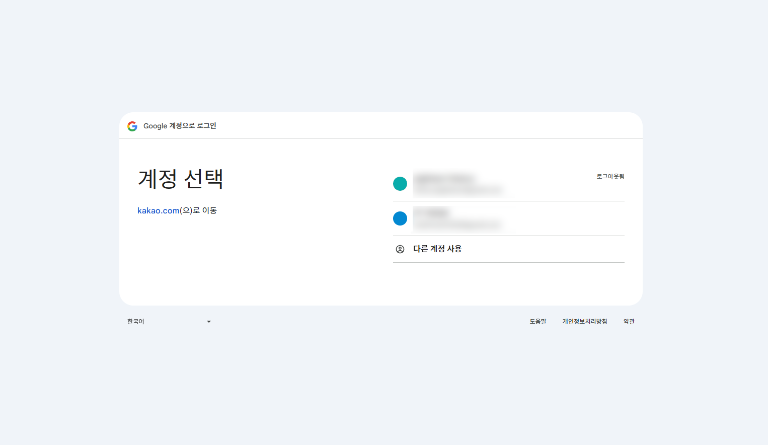 - 2. PC 결제 시 등록할 계정을 선택해 로그인합니다.