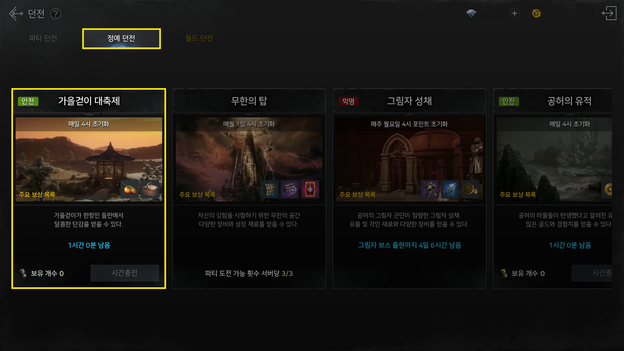 | 풍요로운 한가위 스킬 강화 패키지 | 희귀 스킬 기술서 100개 | 서버당 2회 | |