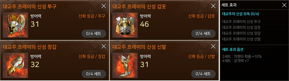 - 거점 지배자 '대교주 프레이' 처치 보상으로 획득할 수 있는 신규 신화 방어구 '대교주 프레이의 신성 방어구' 세트가 추가됩니다.