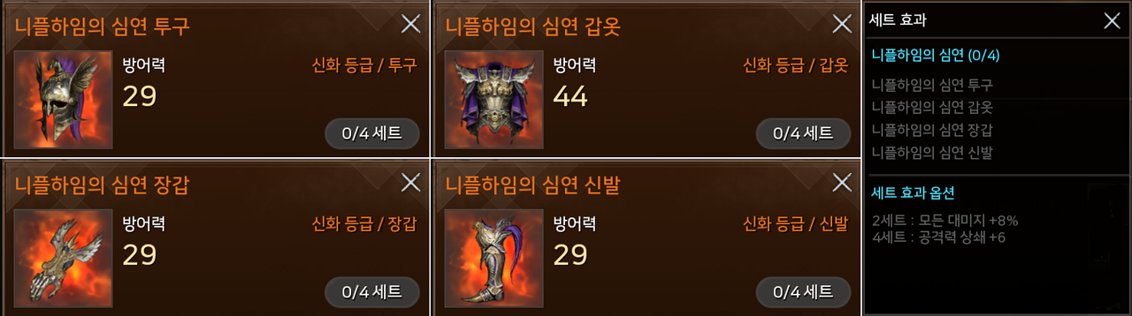 - 신규 재료와 불꽃의 에테르를 통해 제작할 수 있는 신화 방어구 '니플하임의 심연 방어구' 세트가 추가됩니다.