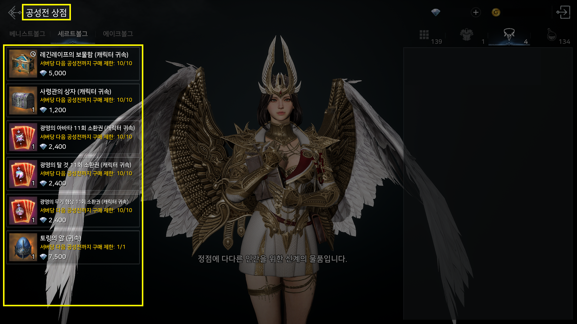 '왕실의 축복받은 정수 상자', '왕실의 정수 상자'가 판매 목록에서 제외됩니다.