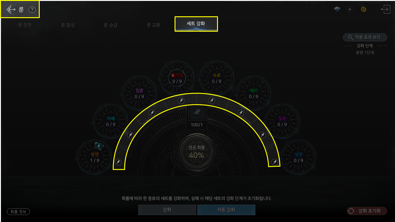 | 룬 세트 강화 패키지Ⅲ | 룬 파편 100개 | 서버당 8회 | |