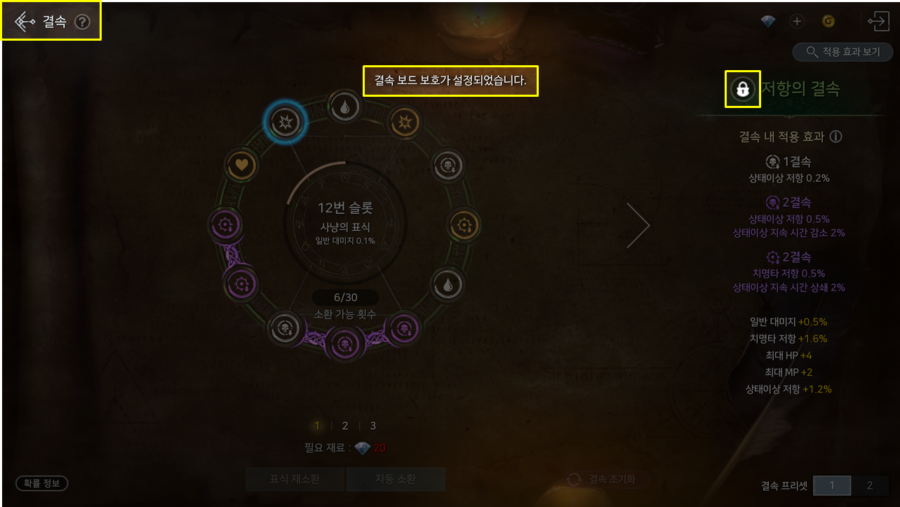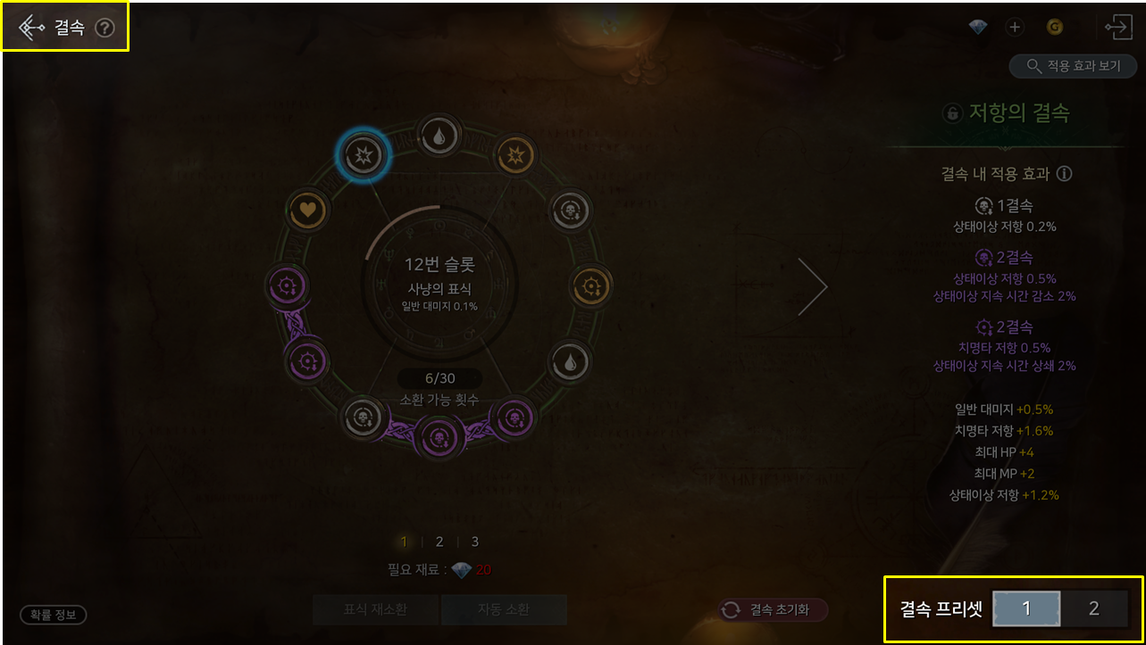 · [기민함의 증표]를 아이템 수집에 등록하면 추가 능력치를 얻을 수 있습니다. (모든 대미지 증가 +3%, 회피 +3)