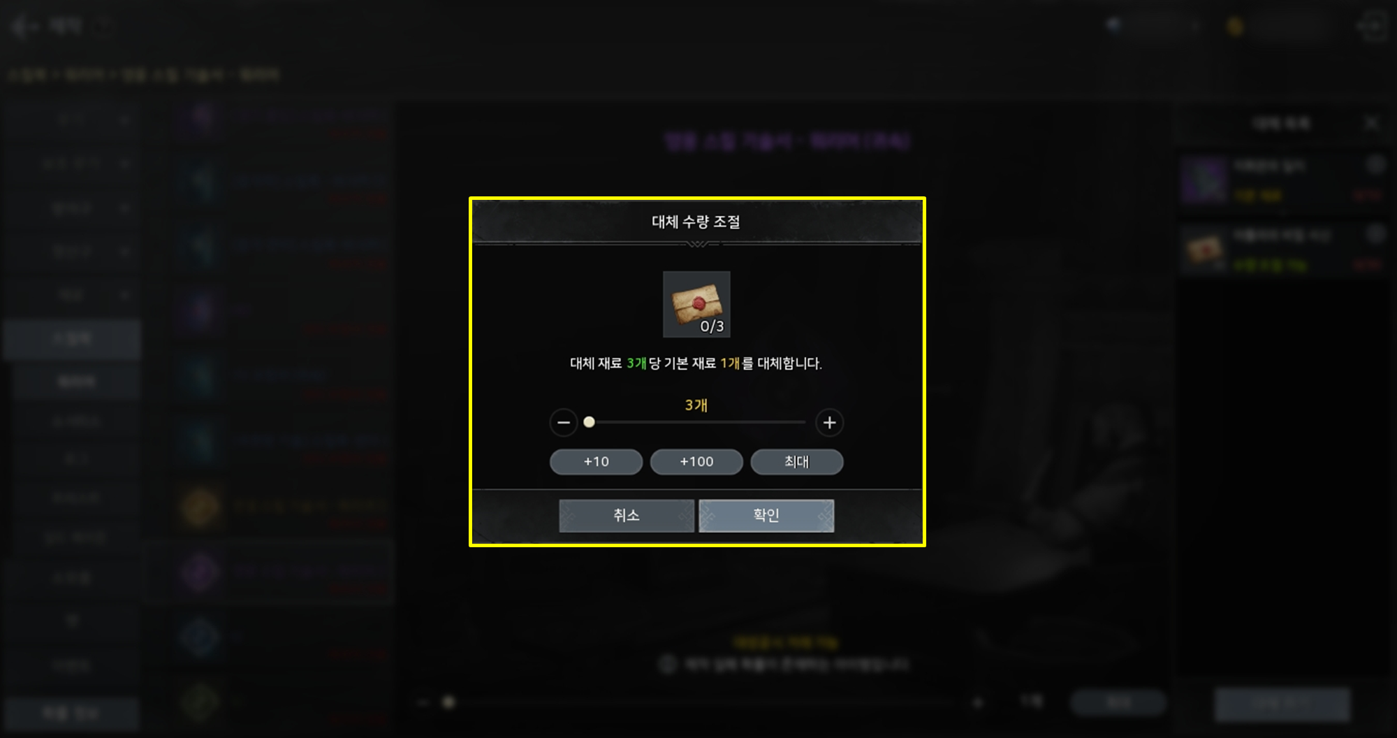 - 아이템 제작 시, 기본 재료 대신 사용되는 대체 재료의 수량을 조절하는 기능이 추가됩니다.