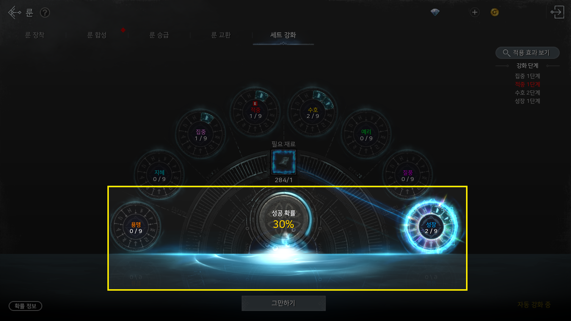 1) 룬 세트 강화 UI 개선
