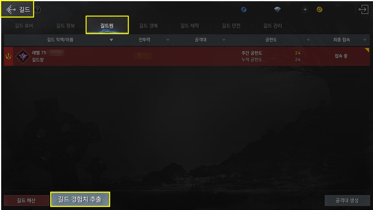 · 길드 레벨 4 이상부터 길드 경험치 추출이 가능합니다.
