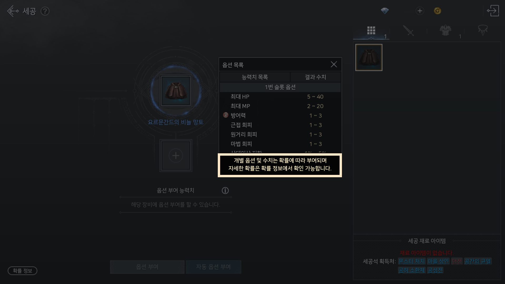 - 세공 옵션 목록에서 확인 가능한 확률 안내 문구가 변경됩니다.