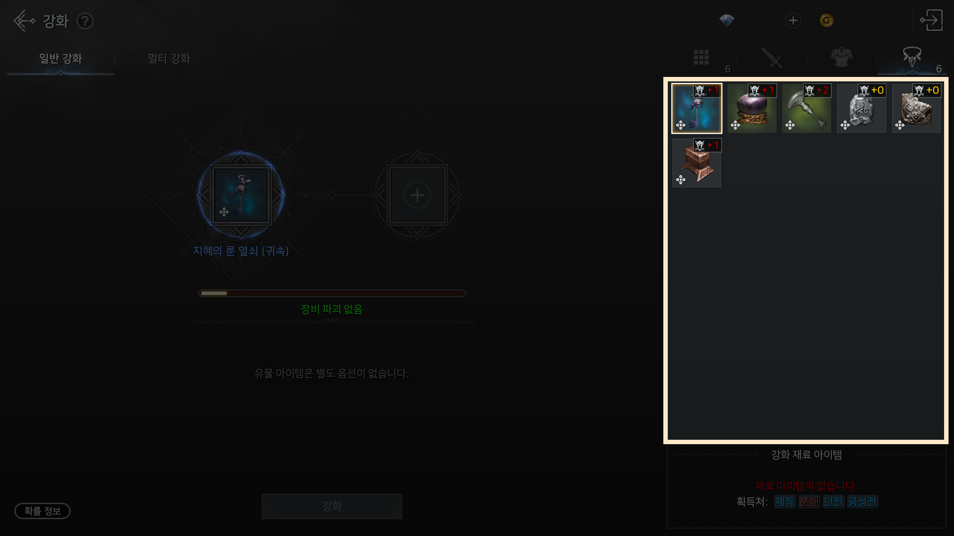 - 강화 탭에서 아이템 수집에 등록 가능한 유물의 최소 강화 단계가 표시됩니다.