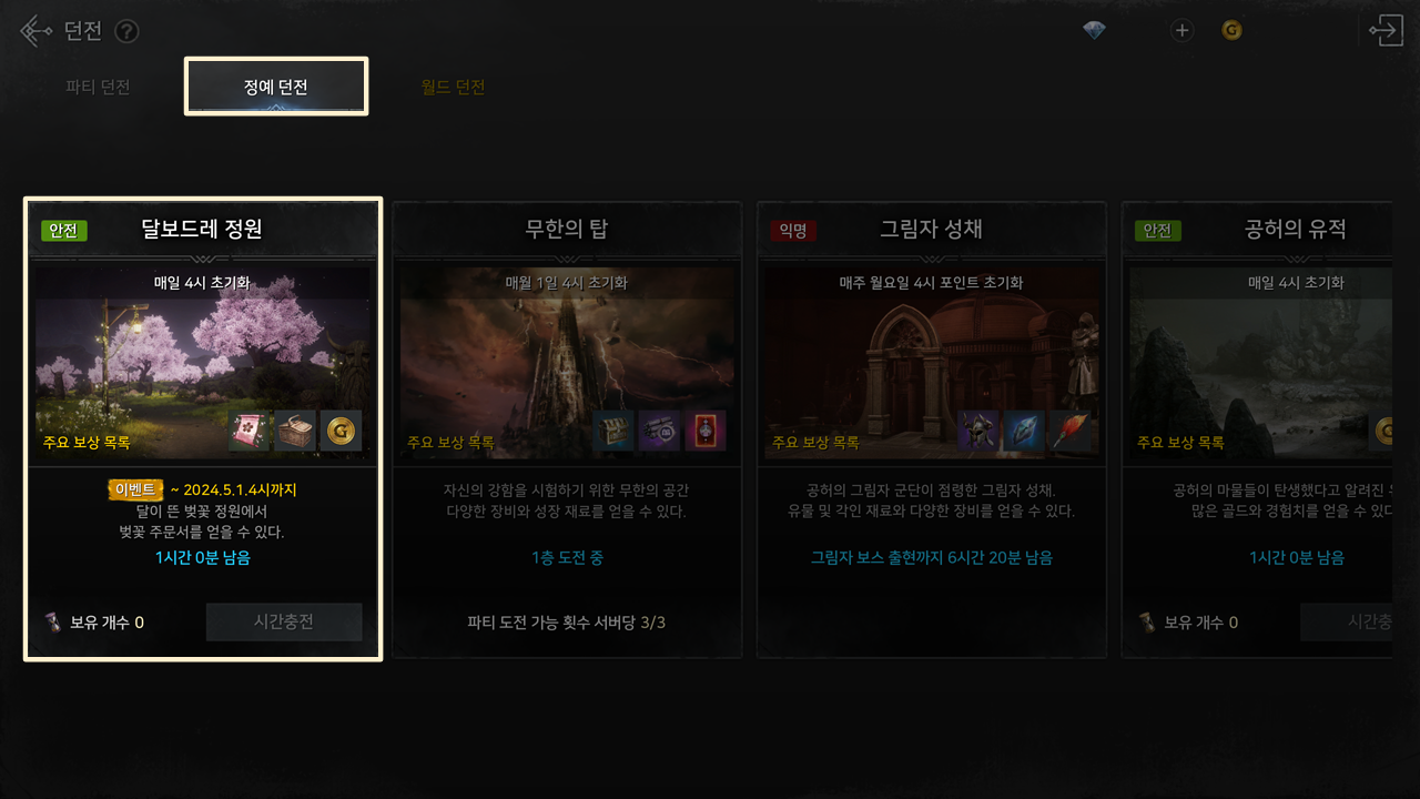 | 이벤트 던전 - 달보드레 정원 | ||