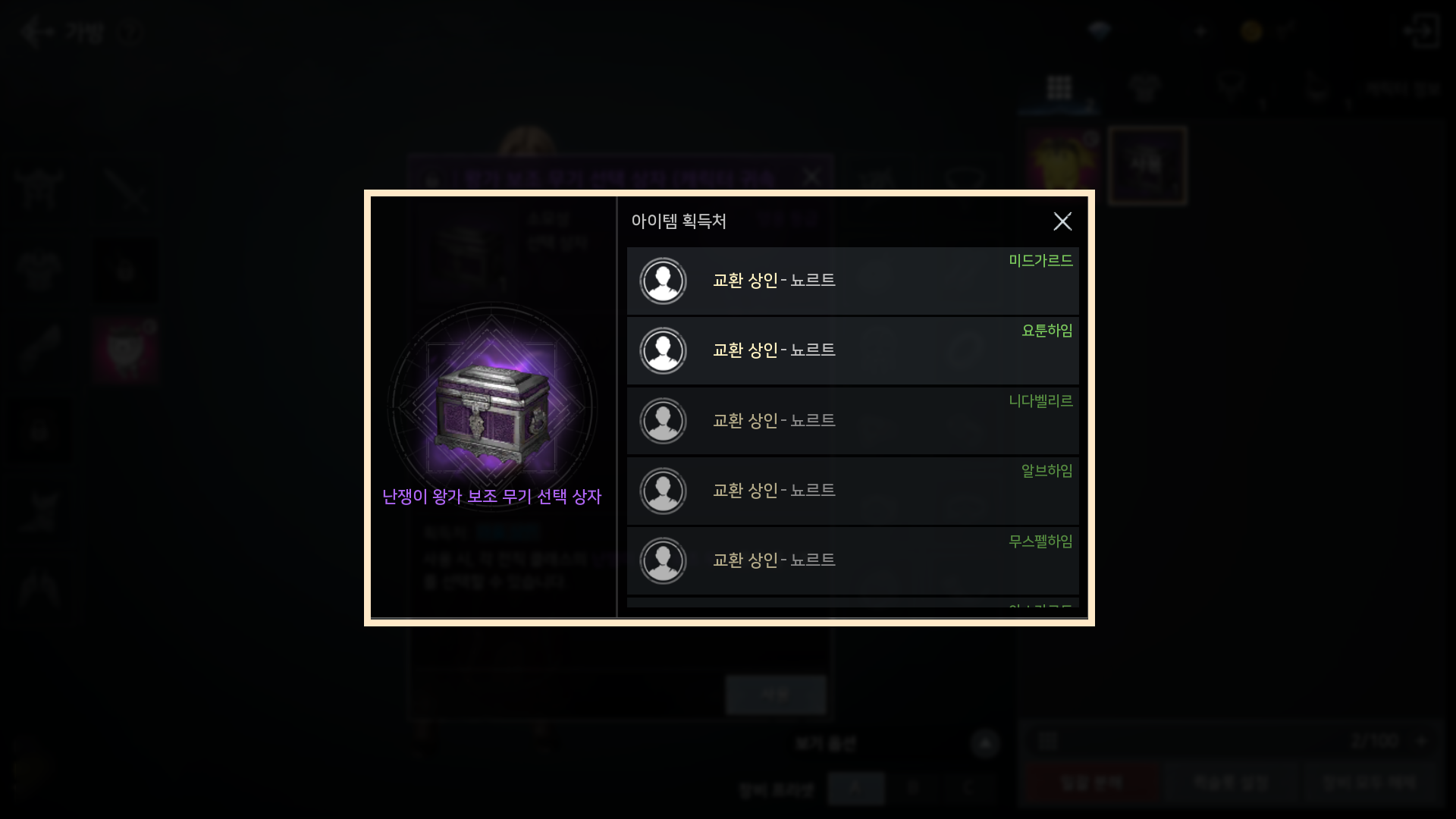 - 상점에서 판매하는 상자 아이템에서 획득 가능한 모든 아이템의 획득처가 표기됩니다.