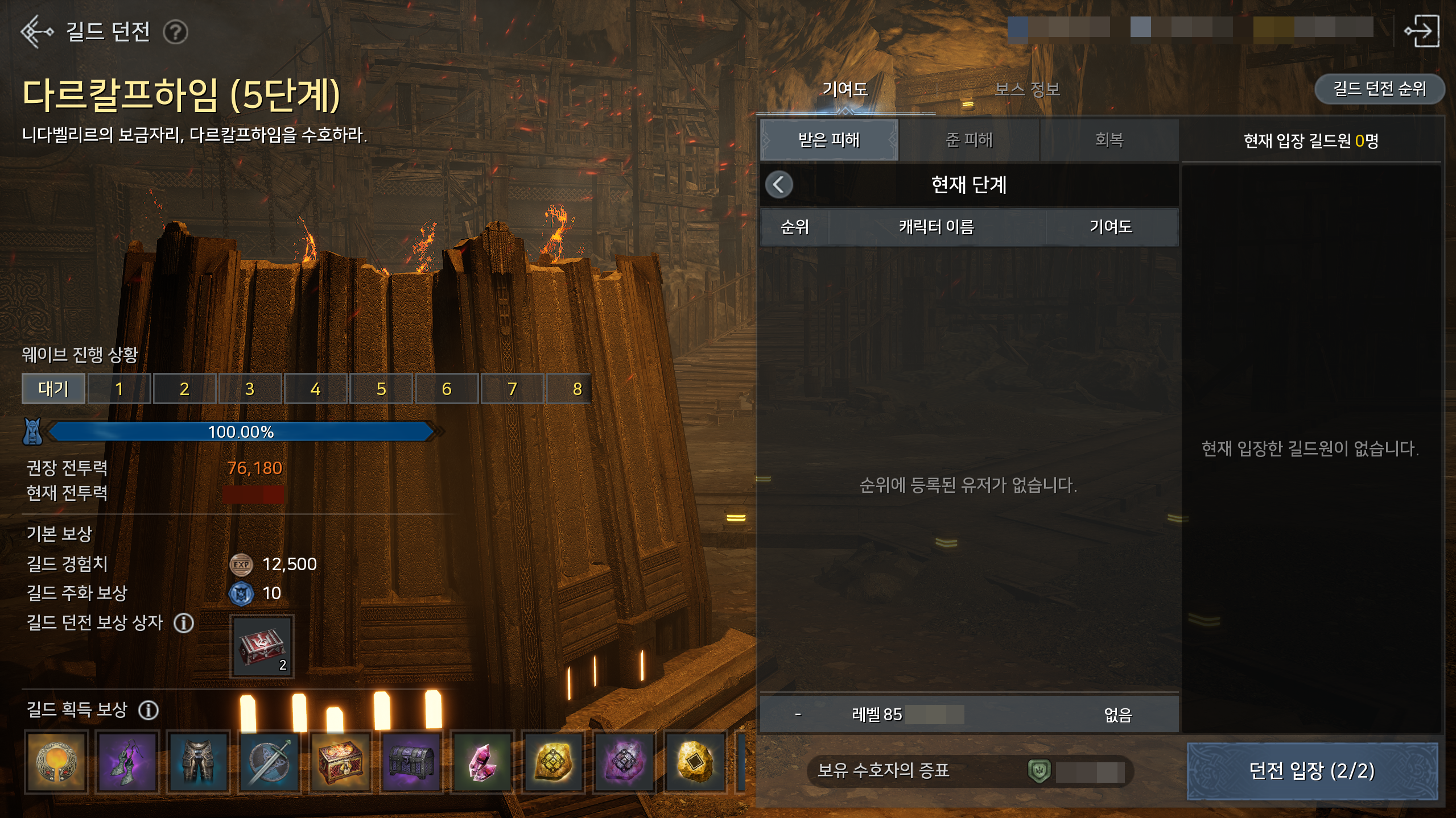 · 진행 단계 변경 버튼은 길드장, 부길드장에게만 노출됩니다.
