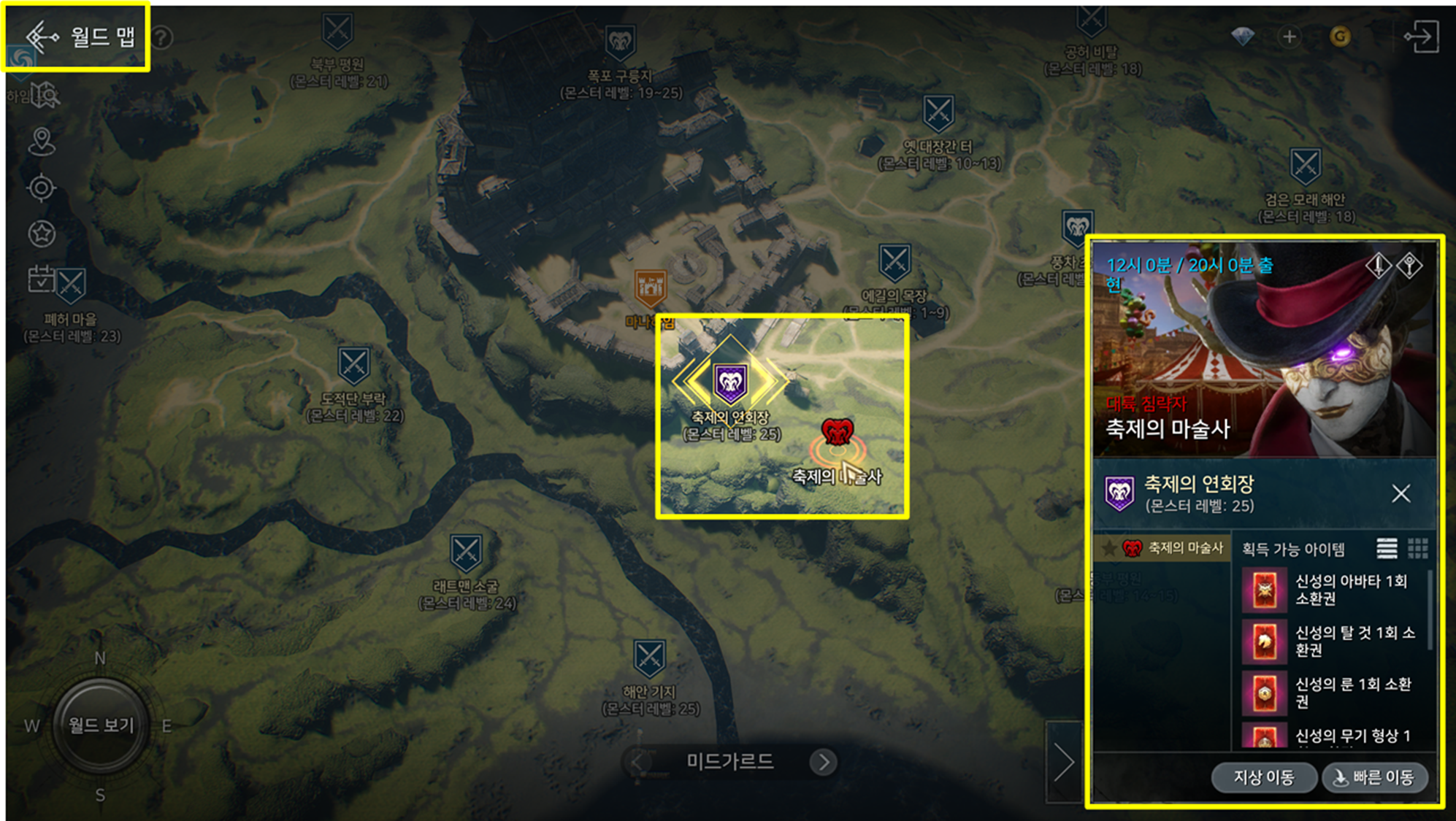 · 현재 신규 서버 에기르는 월드 던전 참가가 불가합니다.