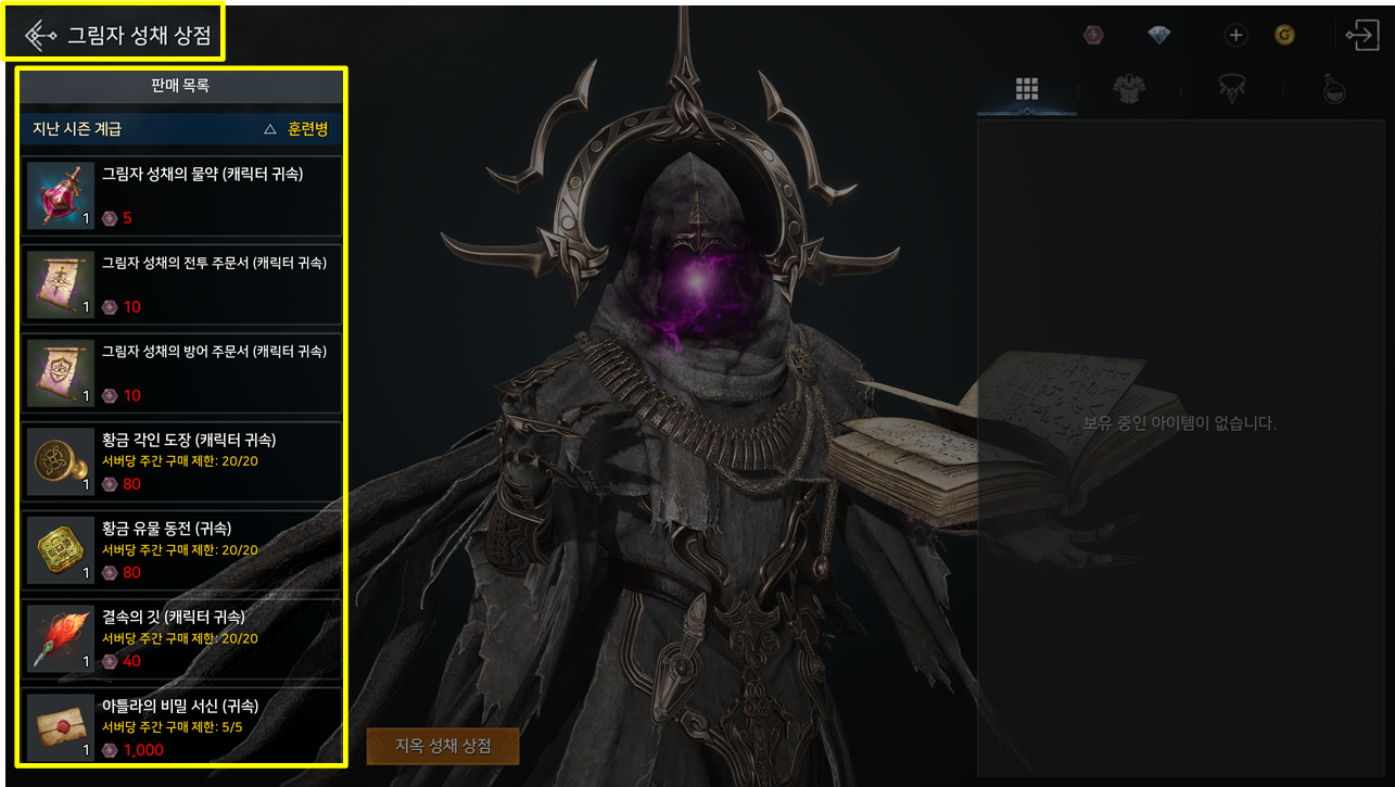- 그림자 성채, 지옥 성채 상점 내 상점 탭(소모품/재료, 장비/유물)이 판매 목록 탭으로 통합됩니다.
