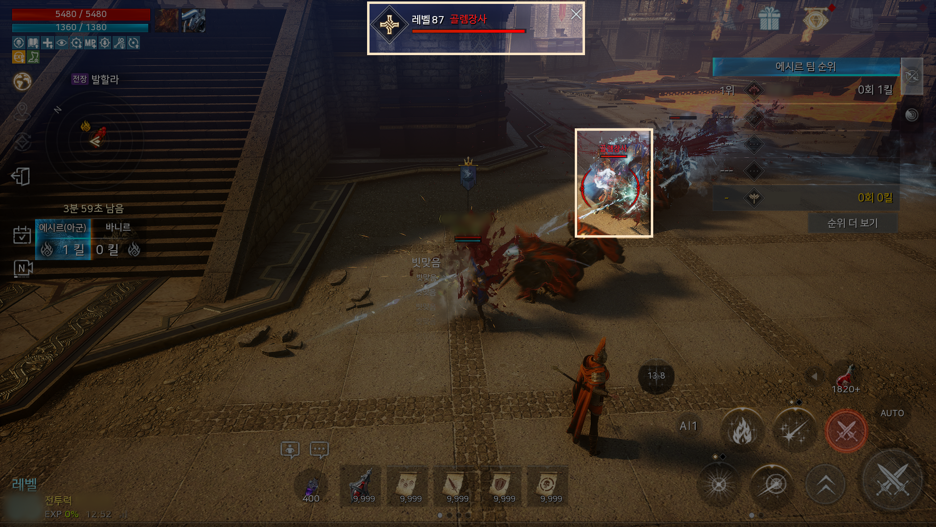 - 설정한 파티 던전/난이도에 입장하여 자동으로 전투를 진행합니다.