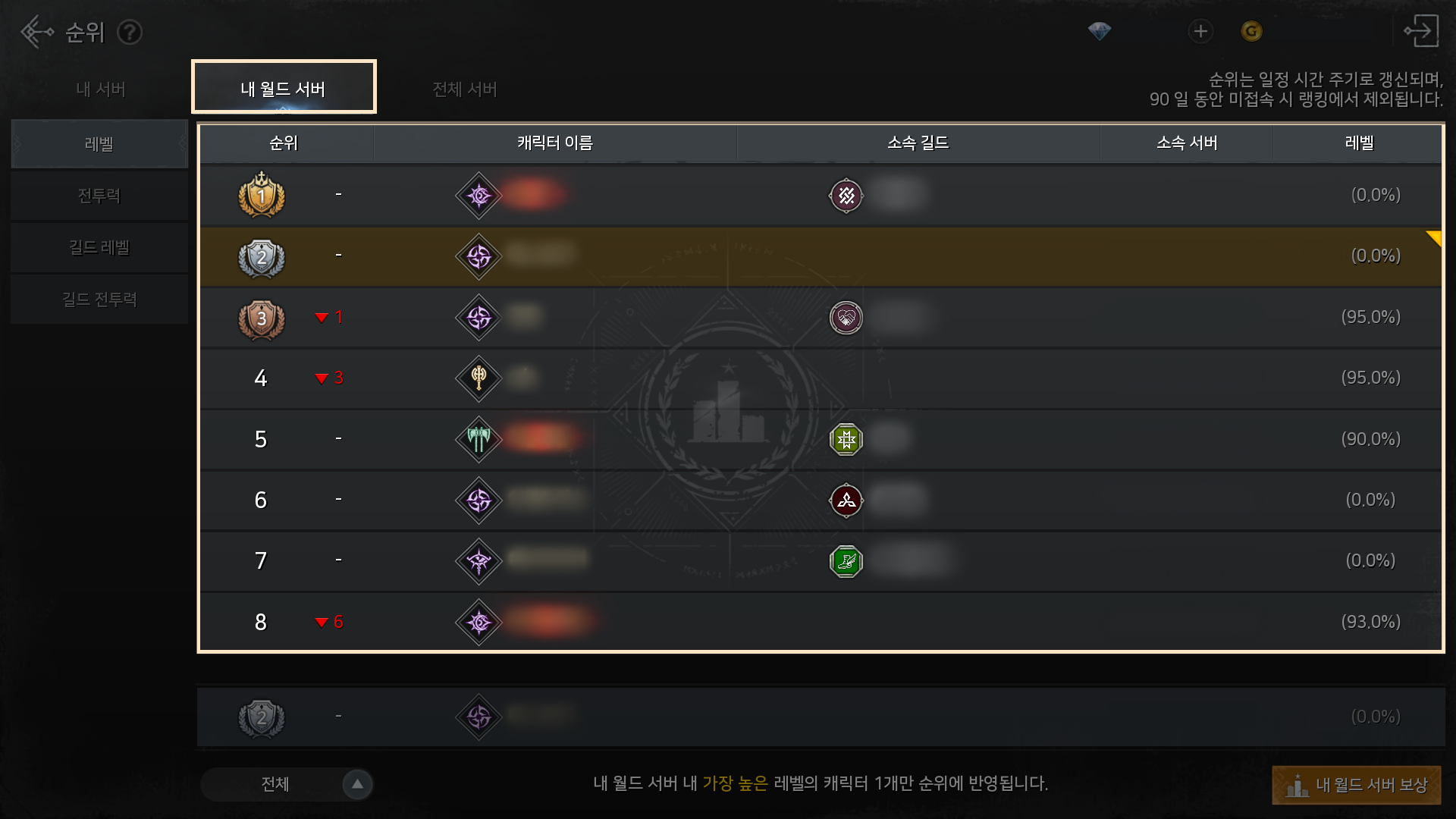 - 현재 소속 중인 월드 서버의 순위를 확인할 수 있는 ‘내 월드 서버‘ 항목이 추가됩니다.