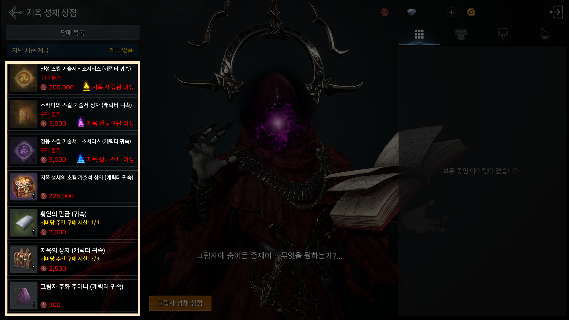- 지옥 성채 상점의 정렬 순서가 클래스 지정 상품 우선에서 상위 등급 상품 우선으로 변경됩니다.