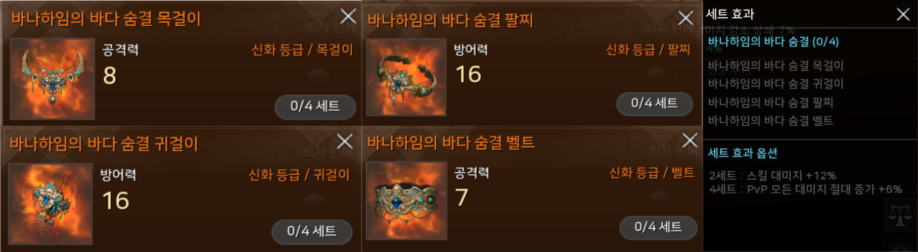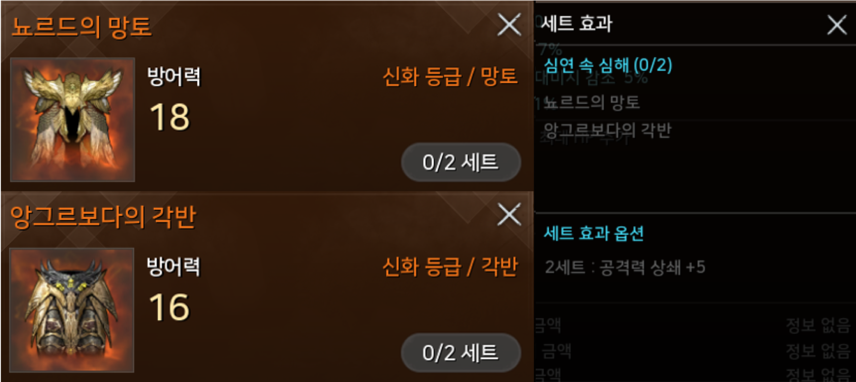 | 영웅 ~ 신화 | 최대 HP% 공격력 받는 스킬 대미지 추가 감소 | 최대 HP% 방어력 받는 PvP 모든 대미지 추가 감소 | 최대 HP% 명중 받는 일반 대미지 추가 감소 |