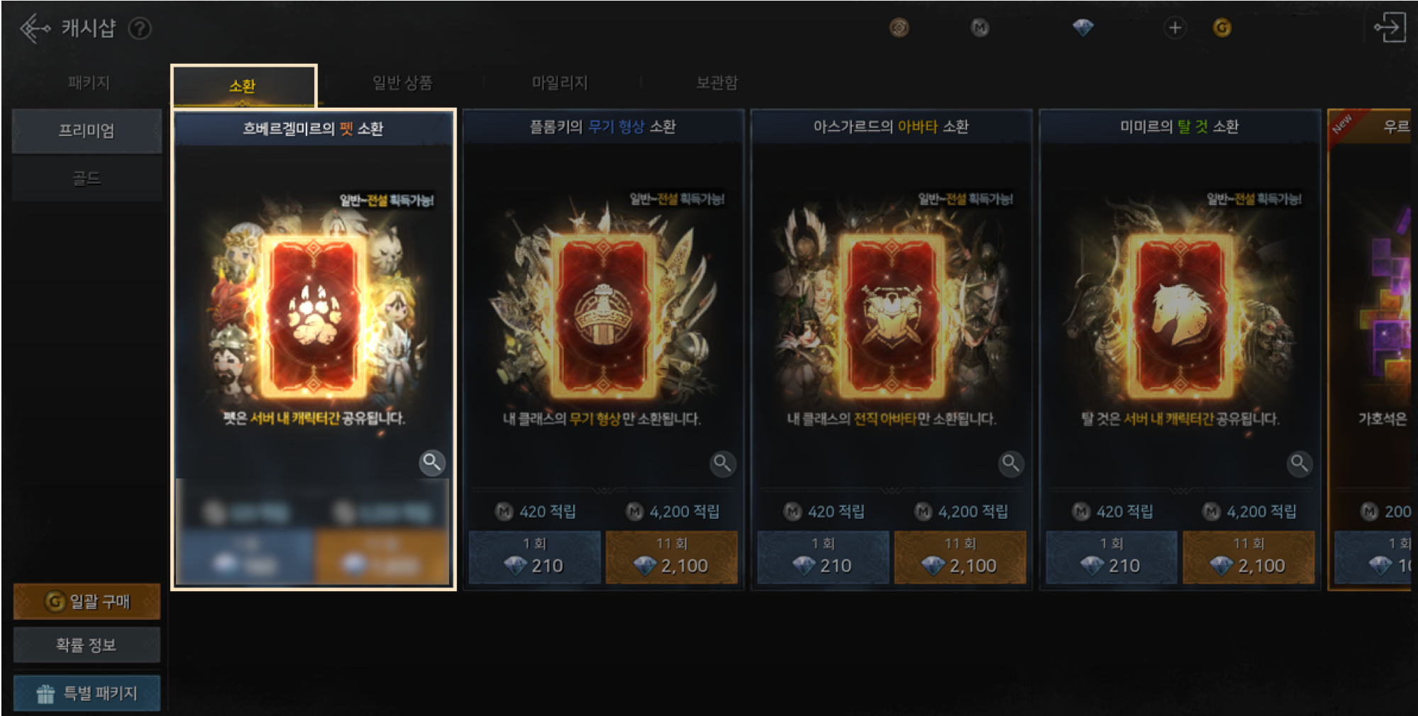 | 암시장 펫 소환 1회 Ⅲ | 골드 펫 소환 1회 |