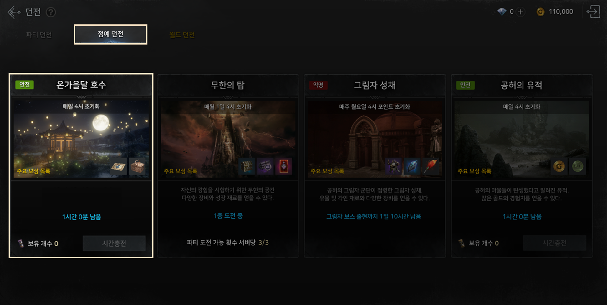 | 이벤트 던전 - 온가을달 호수 | ||