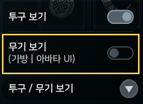 4) 캐릭터 무기 보기 On/Off 기능 추가