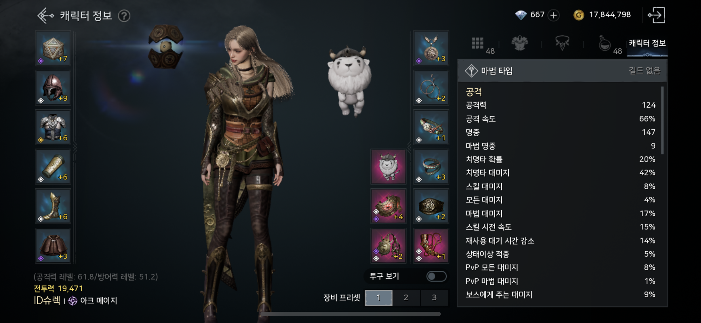 투구, 장갑, 부츠 - mp회복 1