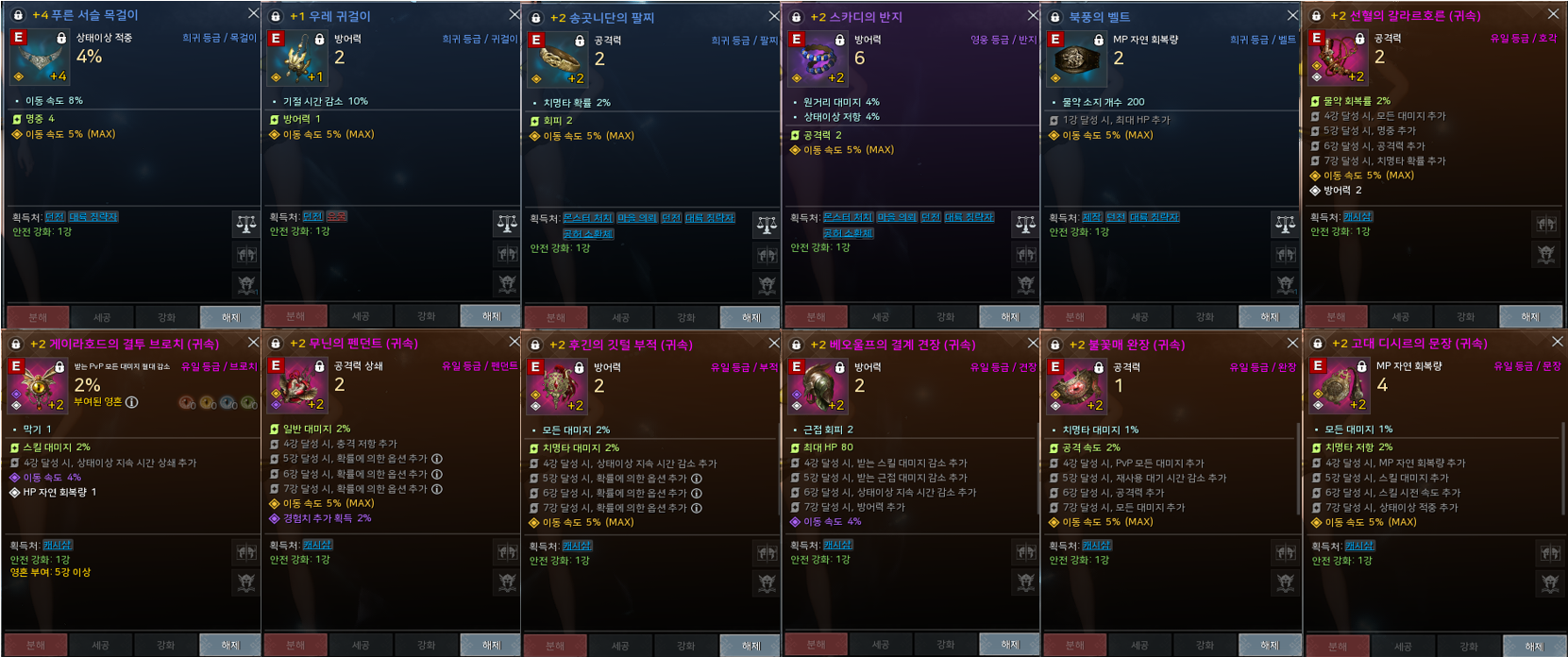 목걸이: 기본속도 희귀 8% / 영웅 10%